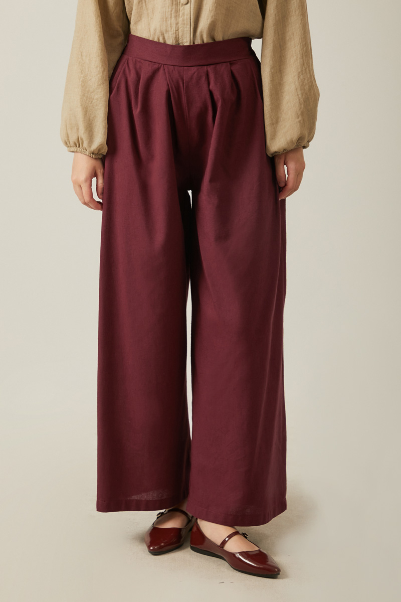 Linen Pleated Wide-Leg Pants Burgundy