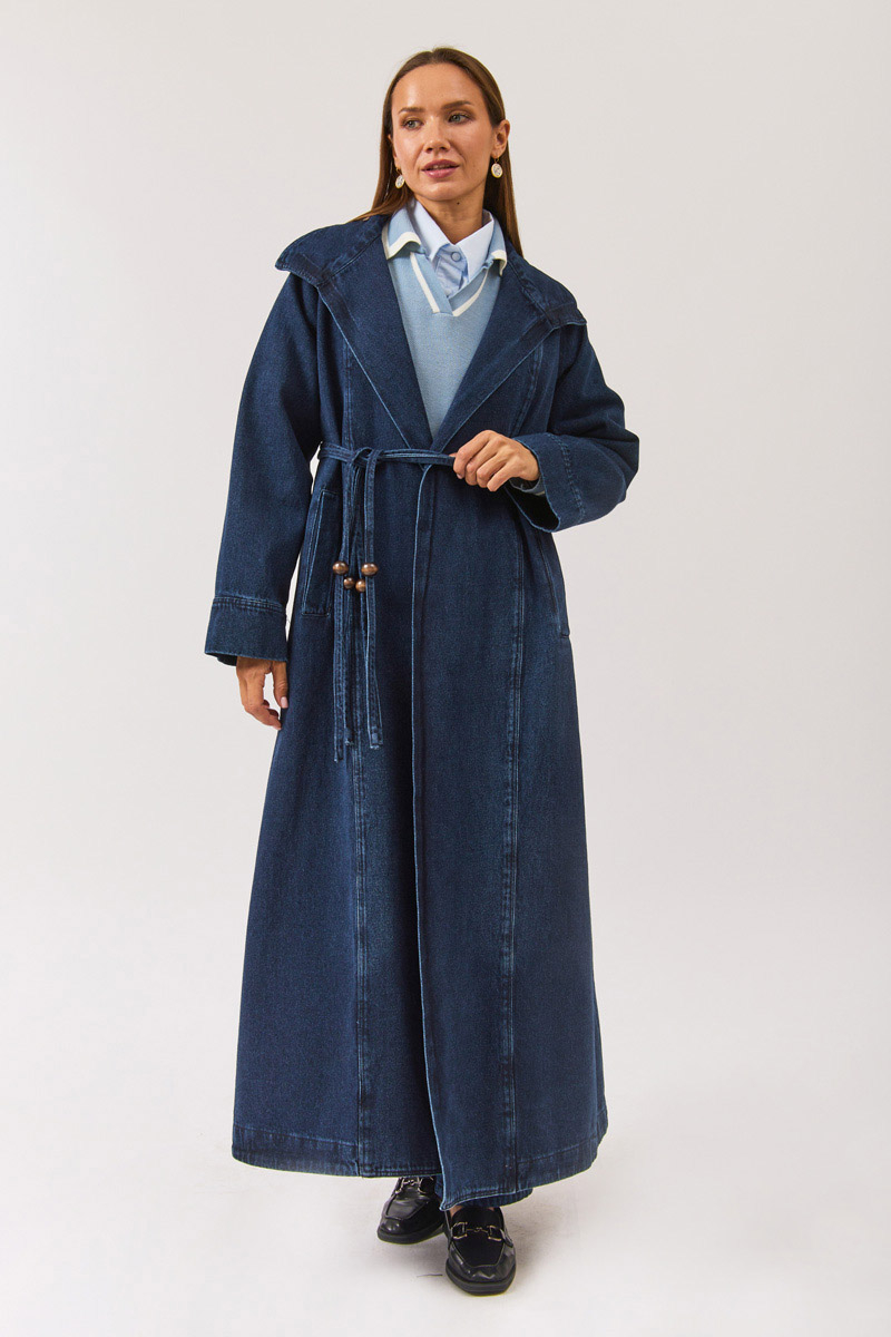 Blending timeless denim texture with a modern silhouette, this long trenchcoat adds a bold touch to your everyday style. Its double-breasted form and adjustable waist belt make it suitable for various body types, while the relaxed fit ensures comfort all day long. With a wide collar, functional pockets, and a full-length design, it’s a must-have outerwear piece for transitional seasons — perfect for both city life and casual outfits.