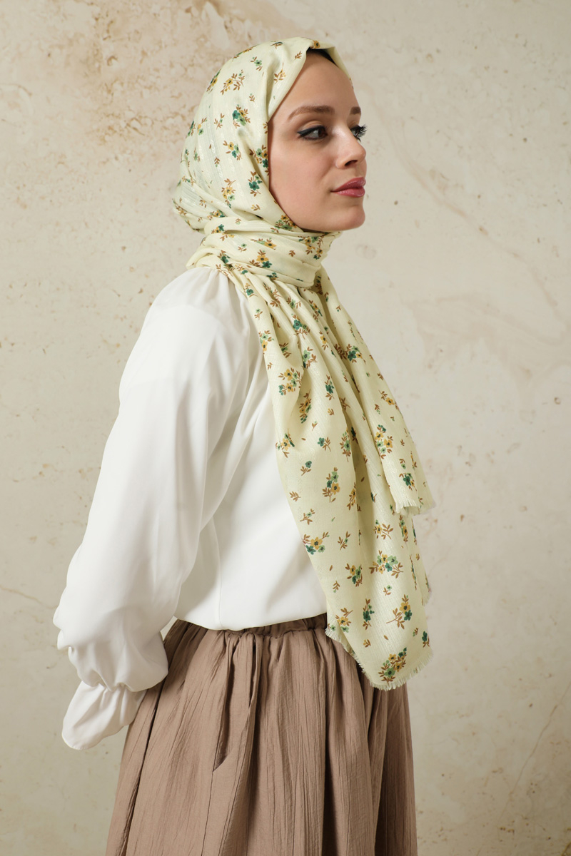 Lotus Desenli Şal Yeşil. Pratik oluşu ve kolay şekil alabilir. Tok duruşlu ve dökümlü yapısıyla çok tercih edilmektedir. Ağırlık yapmayan kumaş özelliği ile sık ve uzun süreli kullanıma uygundur. Dört mevsim kullanıma uygundur.