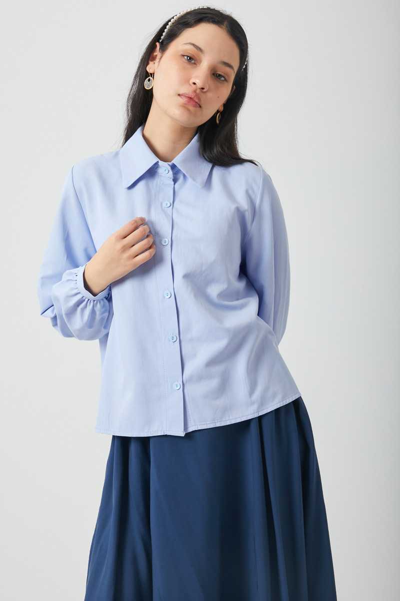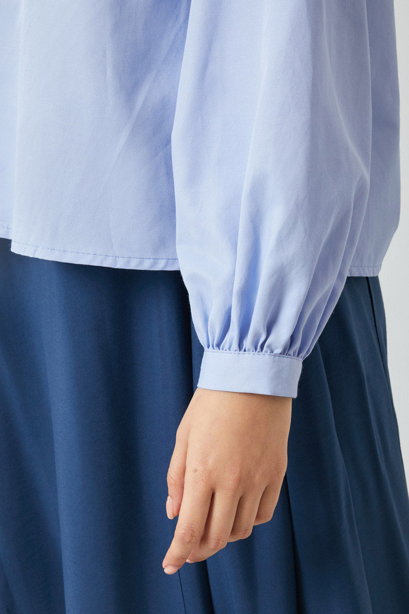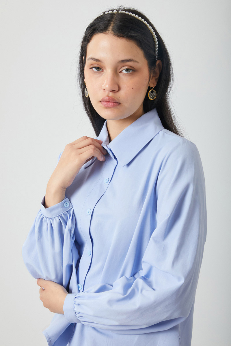 Manşeti Büzgülü Poplin Gömlek Bebe Mavisi. Gömlek yakadır, önden düğmelidir, ince manşetlidir, kolları bilekten büzgülüdür, cepsizidir. Günlük kullanım ve özel günlerinizde tercih edebilirsiniz.