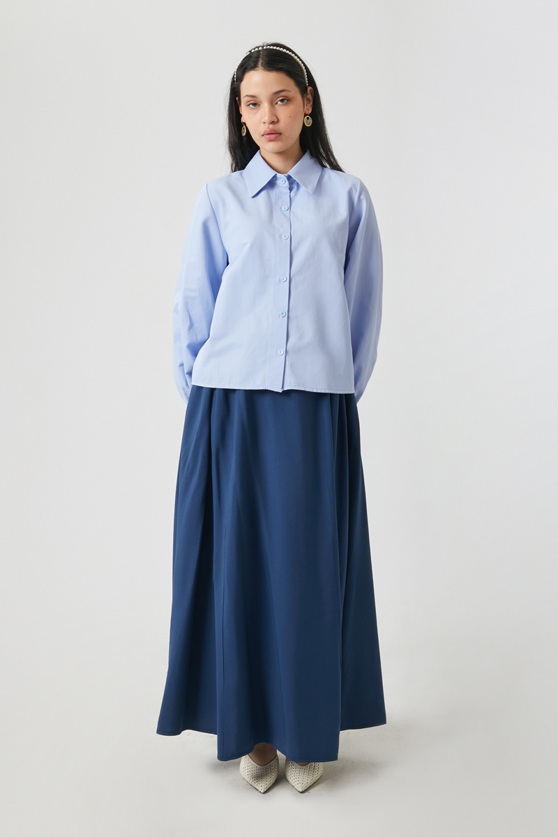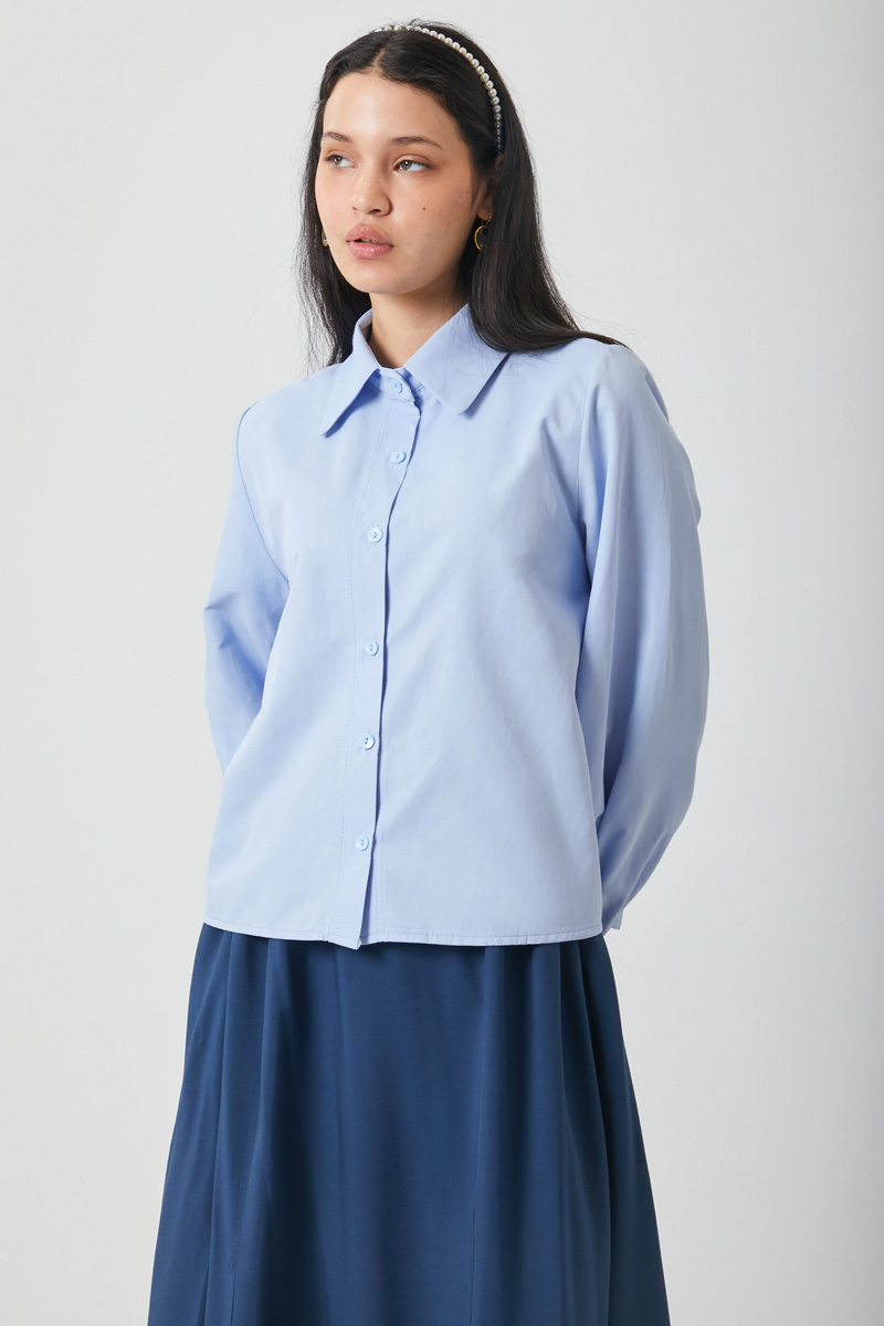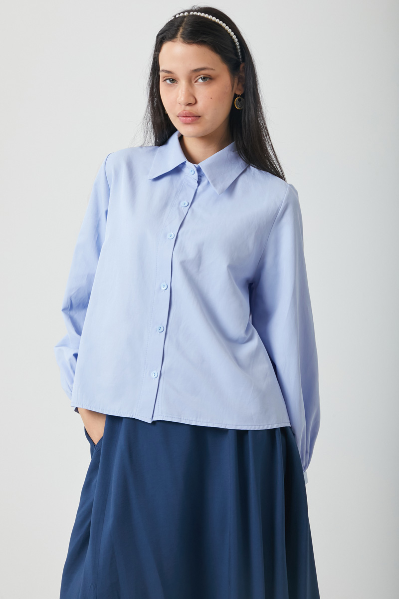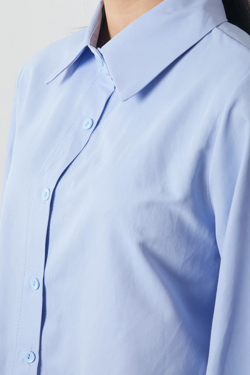 Manşeti Büzgülü Poplin Gömlek Bebe Mavisi. Gömlek yakadır, önden düğmelidir, ince manşetlidir, kolları bilekten büzgülüdür, cepsizidir. Günlük kullanım ve özel günlerinizde tercih edebilirsiniz.