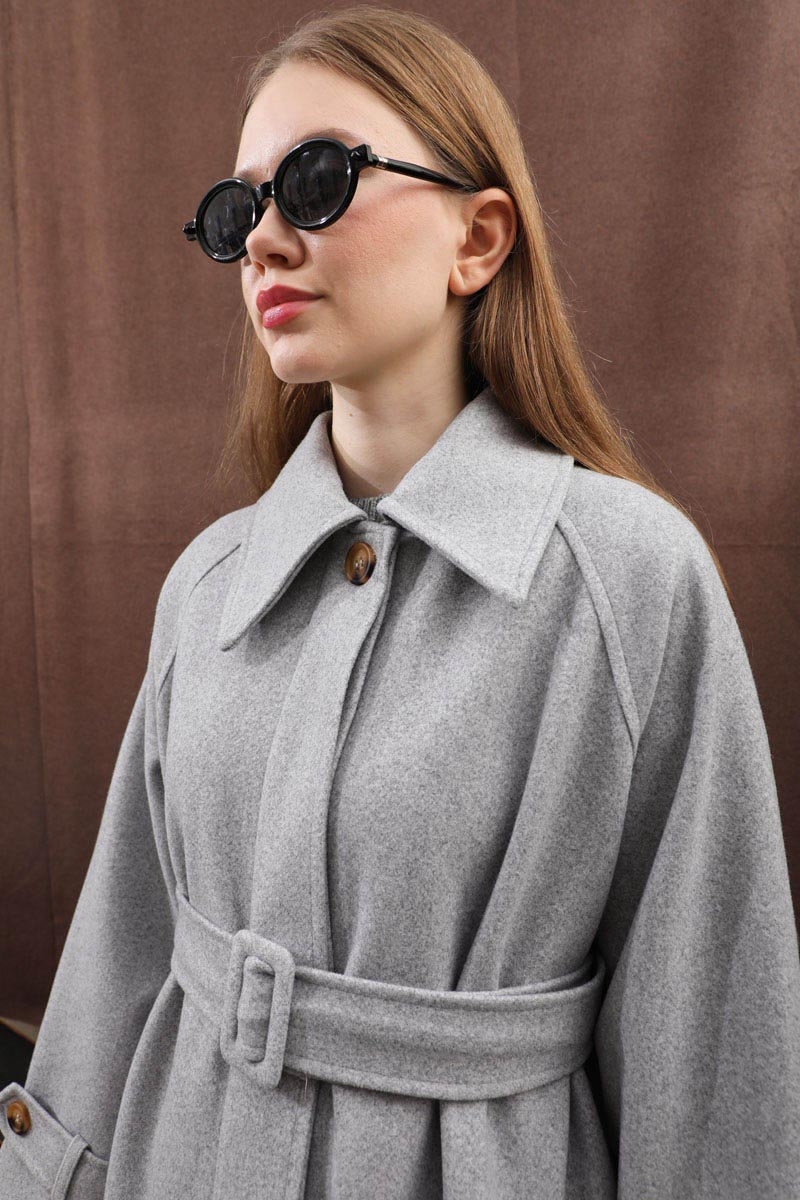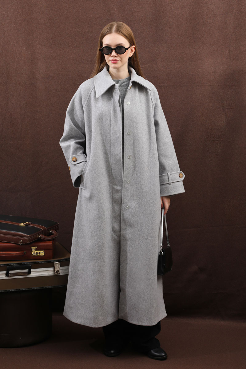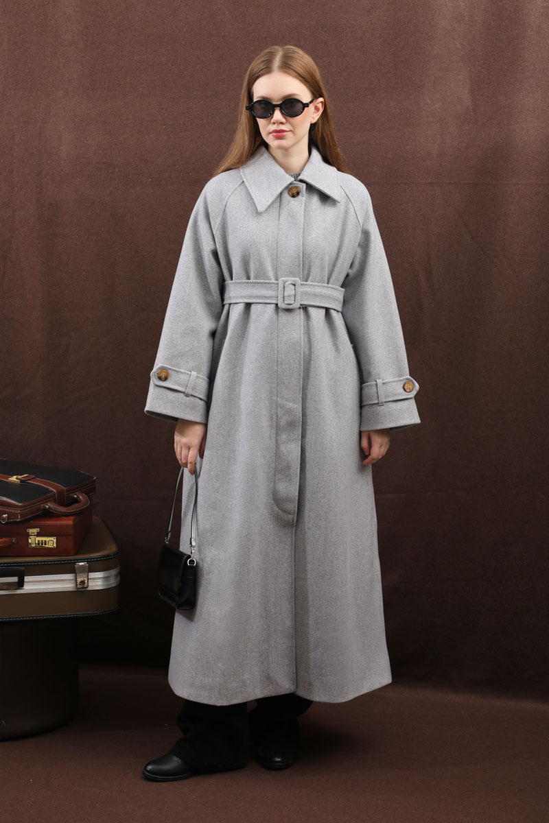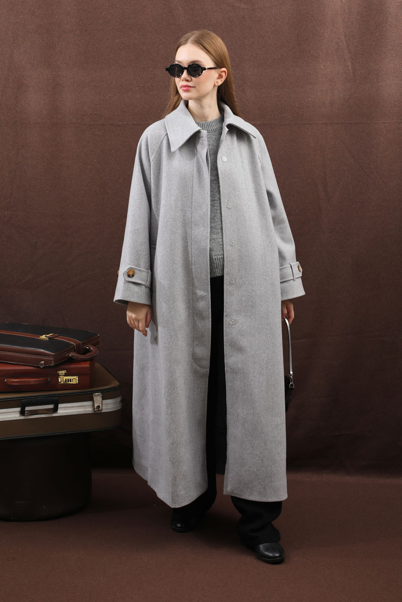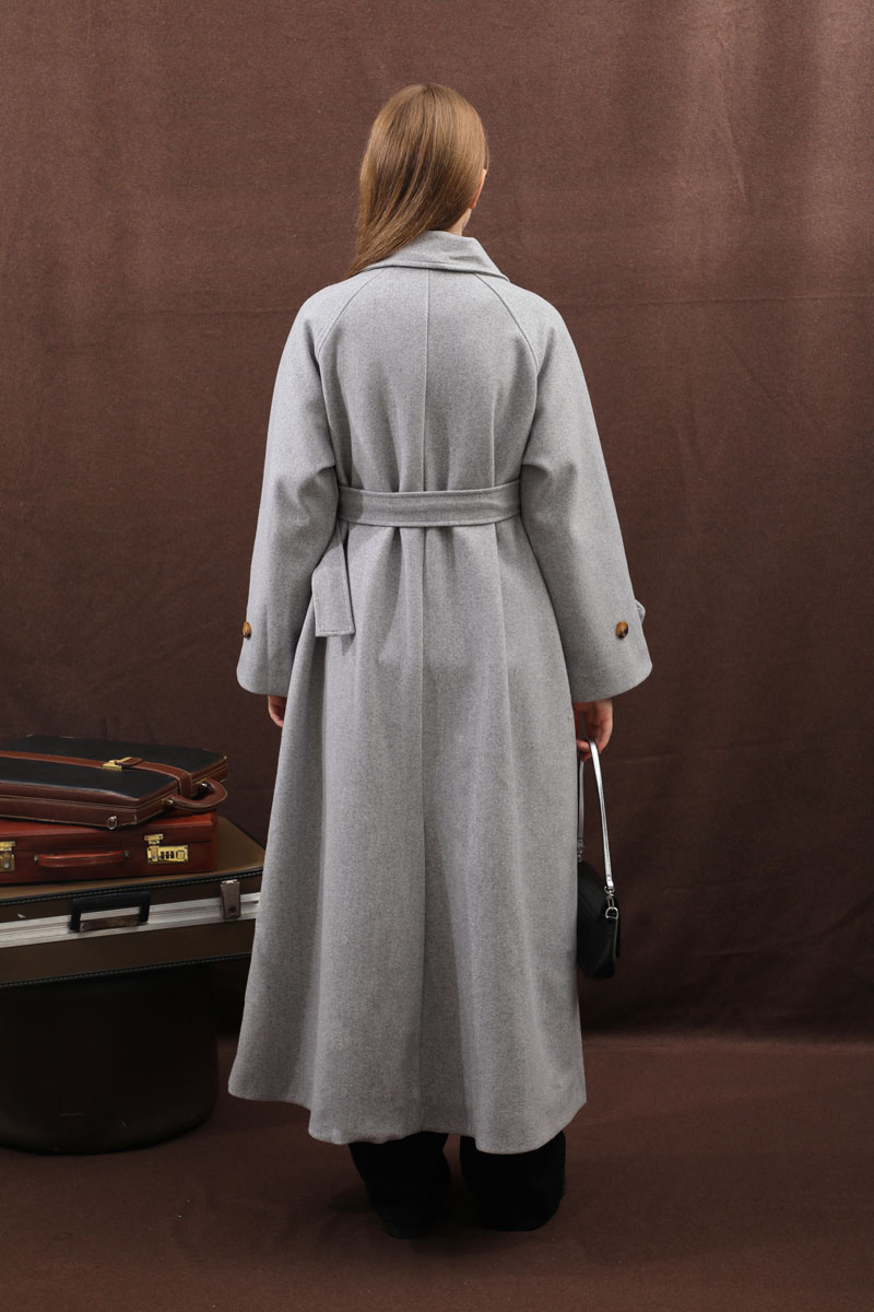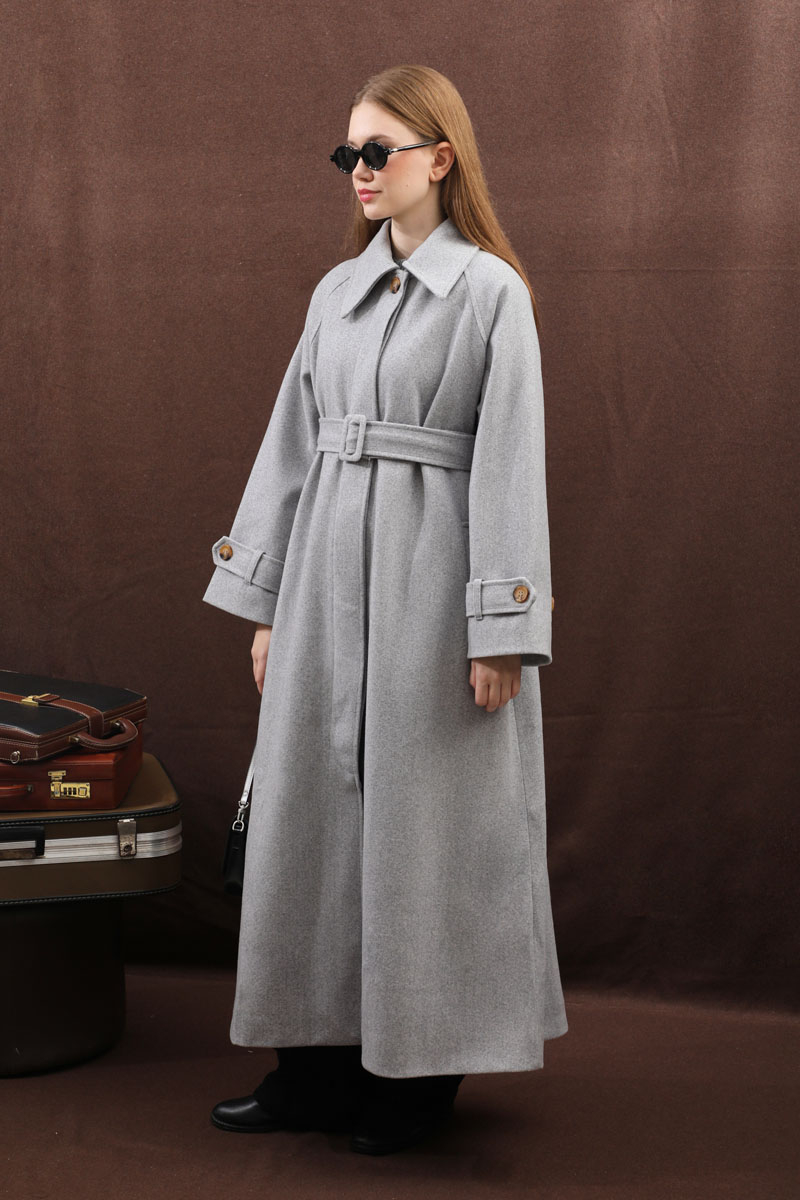 Manşeti Kemerli Uzun Kaban Gri. Geniş gömlek yakadır, gizli düğmelidir, reglan kolludur, bilekten ayarlanabilir kemer detaylıdır. Ceplidir, astarlıdır, toka detaylı kuşaklıdır. Günlük kullanım ve özel günlerinizde tercih edebilirsiniz.