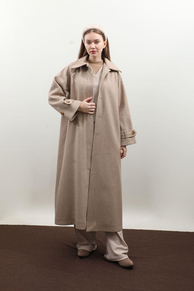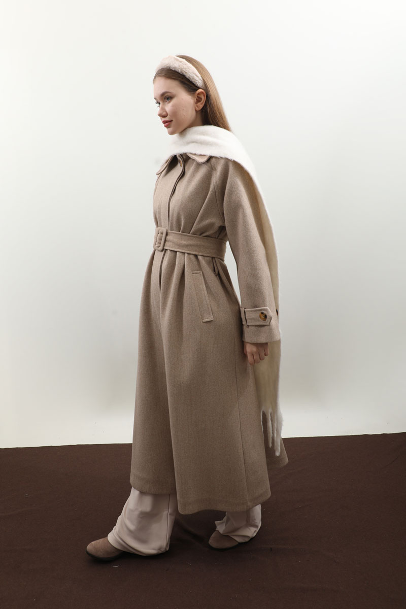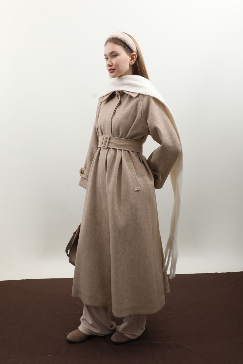 Manşeti Kemerli Uzun Kaban Vizon. Geniş gömlek yakadır, gizli düğmelidir, reglan kolludur, bilekten ayarlanabilir kemer detaylıdır. Ceplidir, astarlıdır, toka detaylı kuşaklıdır. Günlük kullanım ve özel günlerinizde tercih edebilirsiniz.