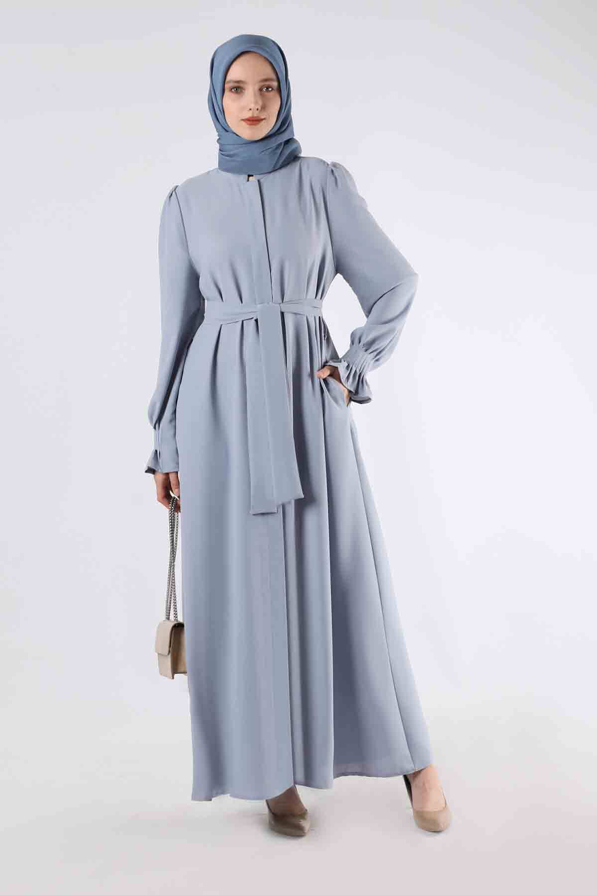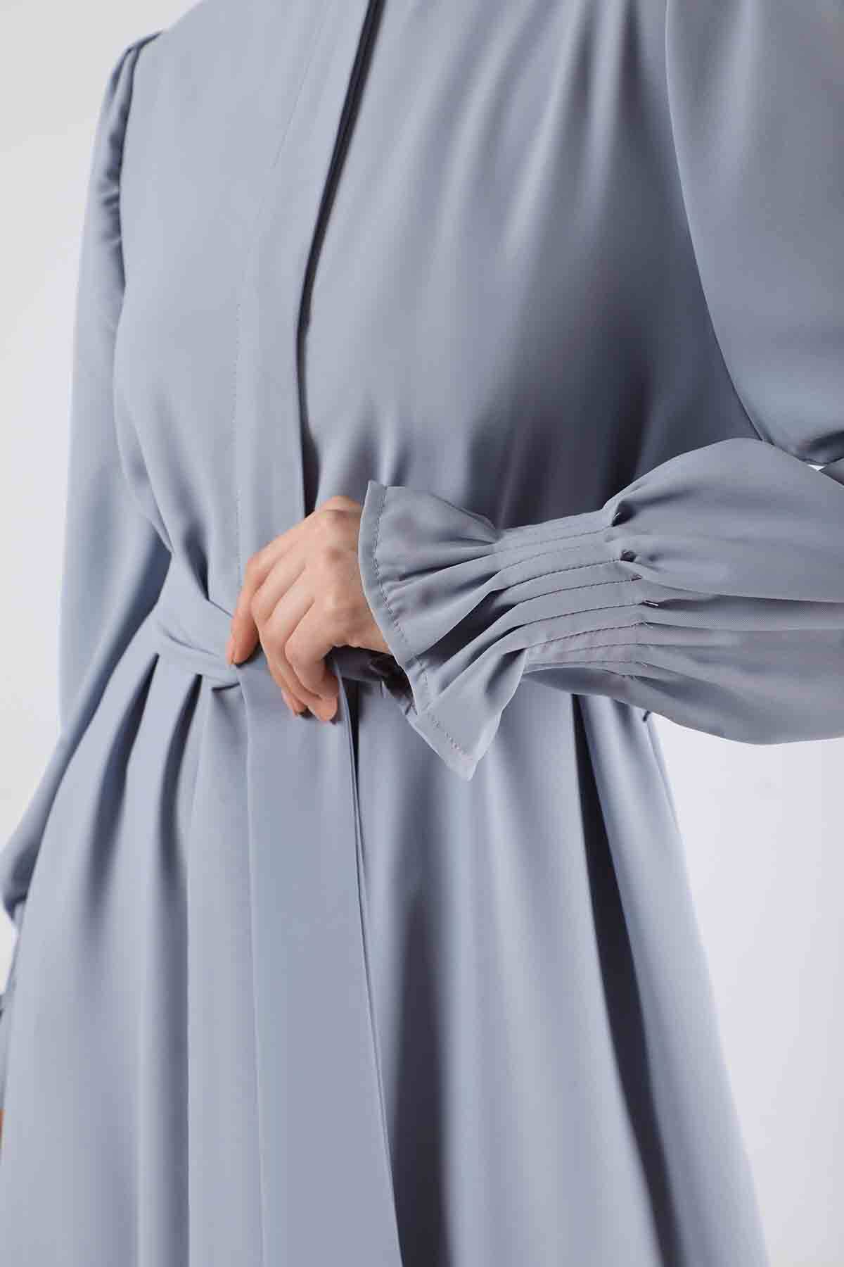 Manşeti Pileli Elbise Ferace Gri. Ceplidir. Kuşaklıdır. Gizli düğmelidir. Günlük kullanımda rahat ve şık olmanın anahtarı olarak dikkat çeken bu ürünümüz yeni sezonun favori ürünlerindendir.
