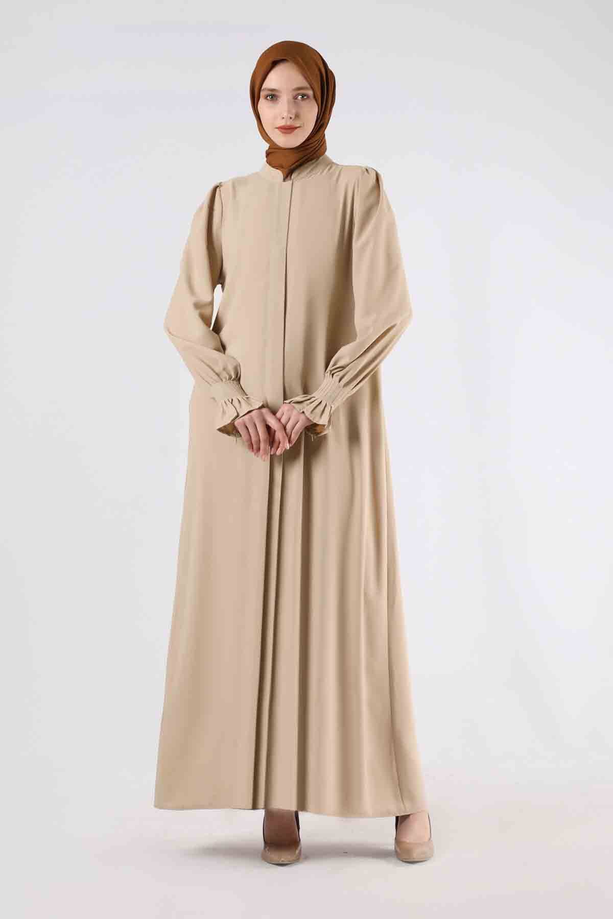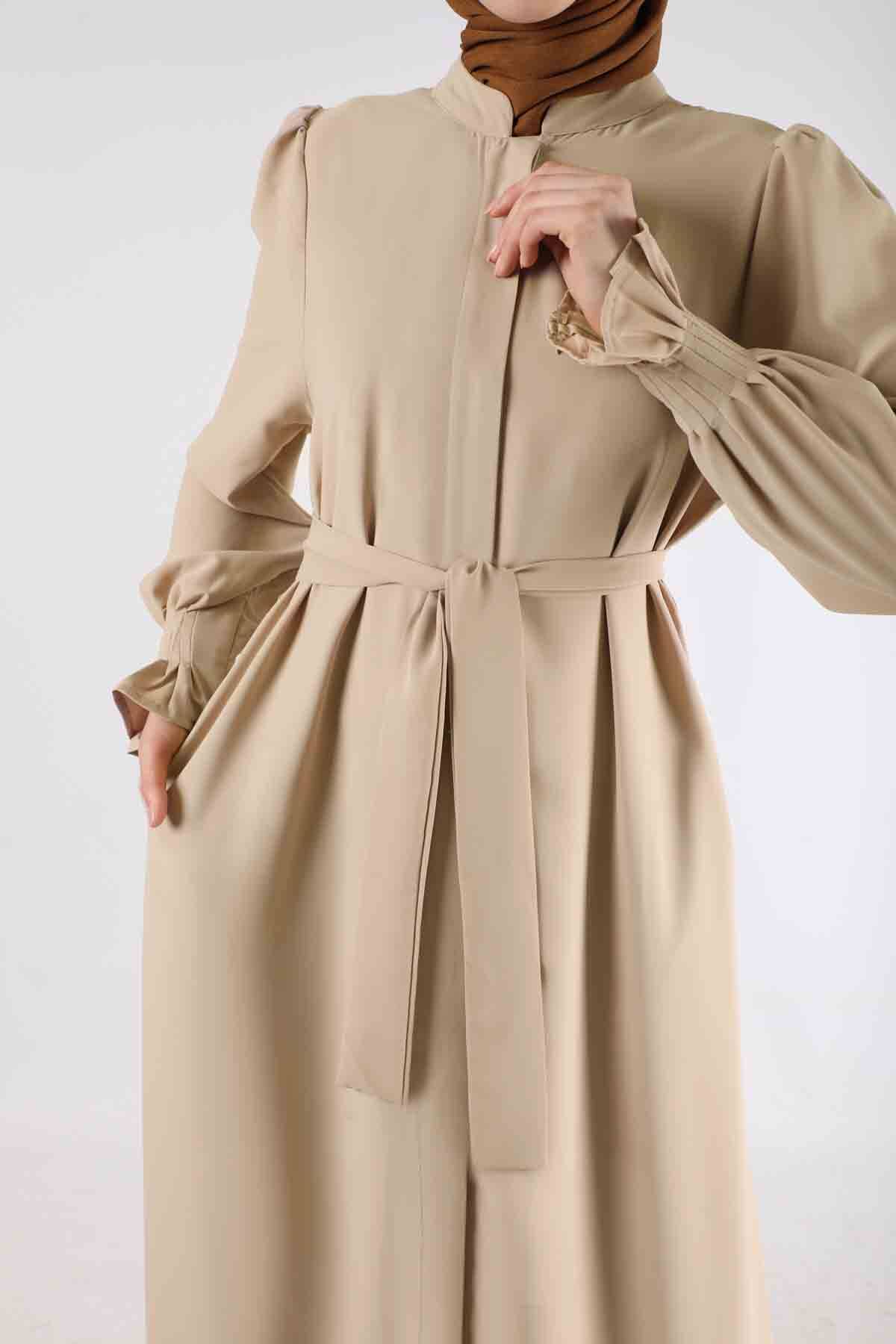 Manşeti Pileli Elbise Ferace Krem. Ceplidir. Kuşaklıdır. Gizli düğmelidir. Günlük kullanımda rahat ve şık olmanın anahtarı olarak dikkat çeken bu ürünümüz yeni sezonun favori ürünlerindendir.