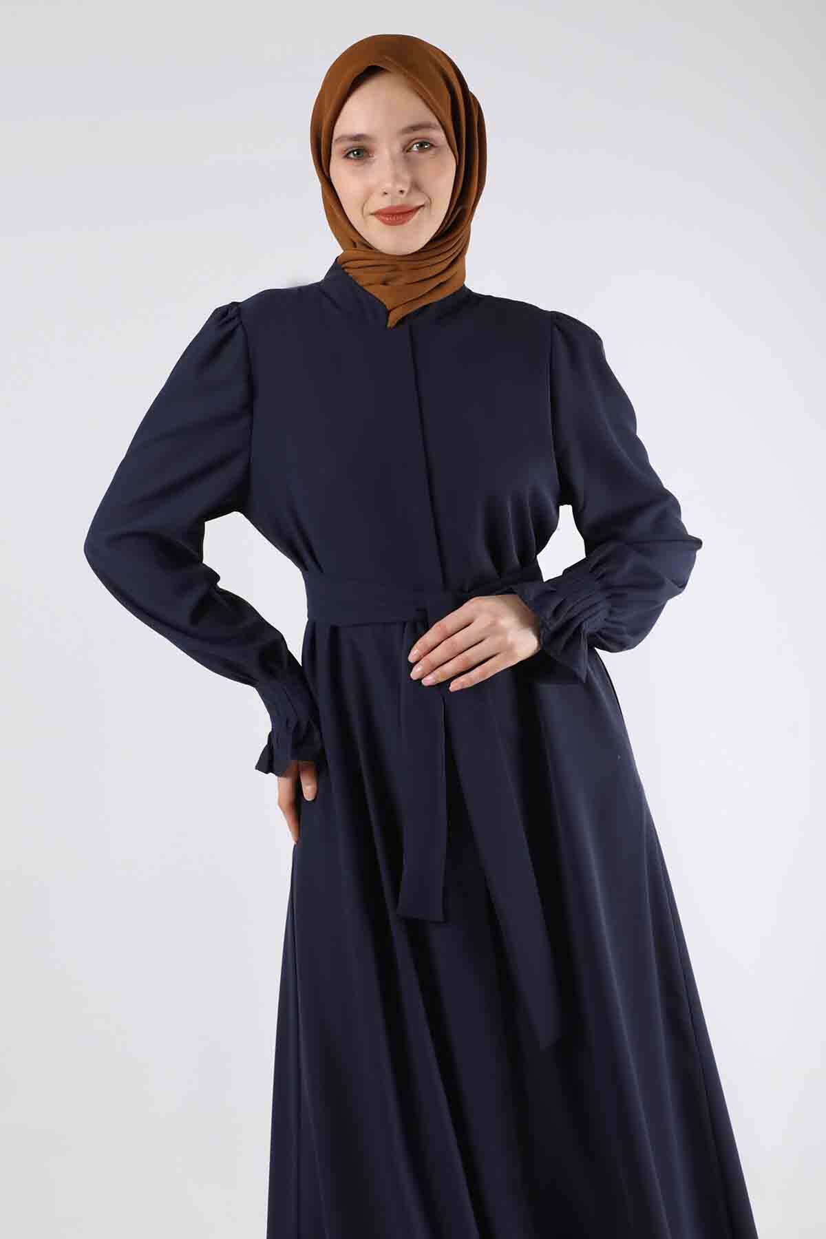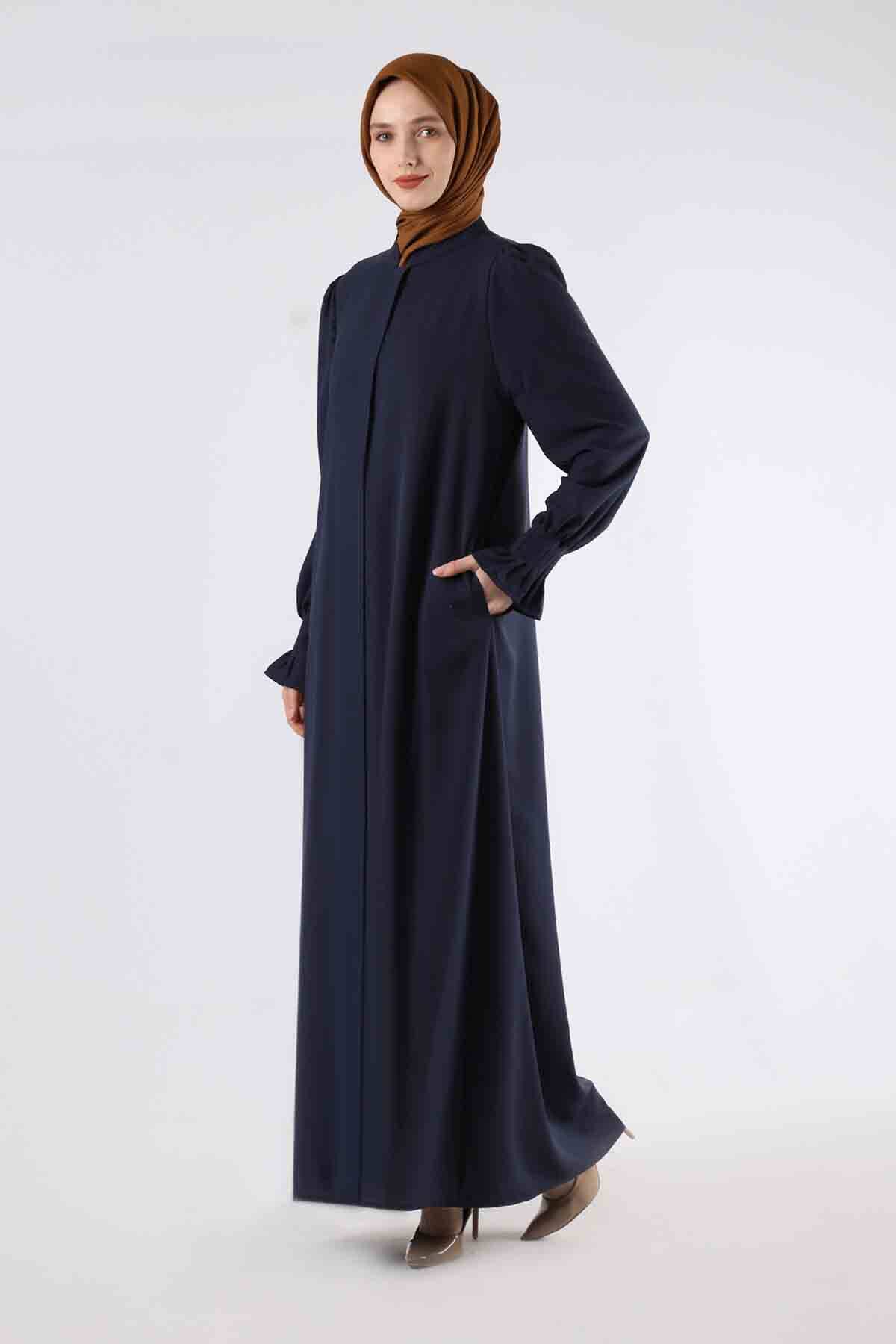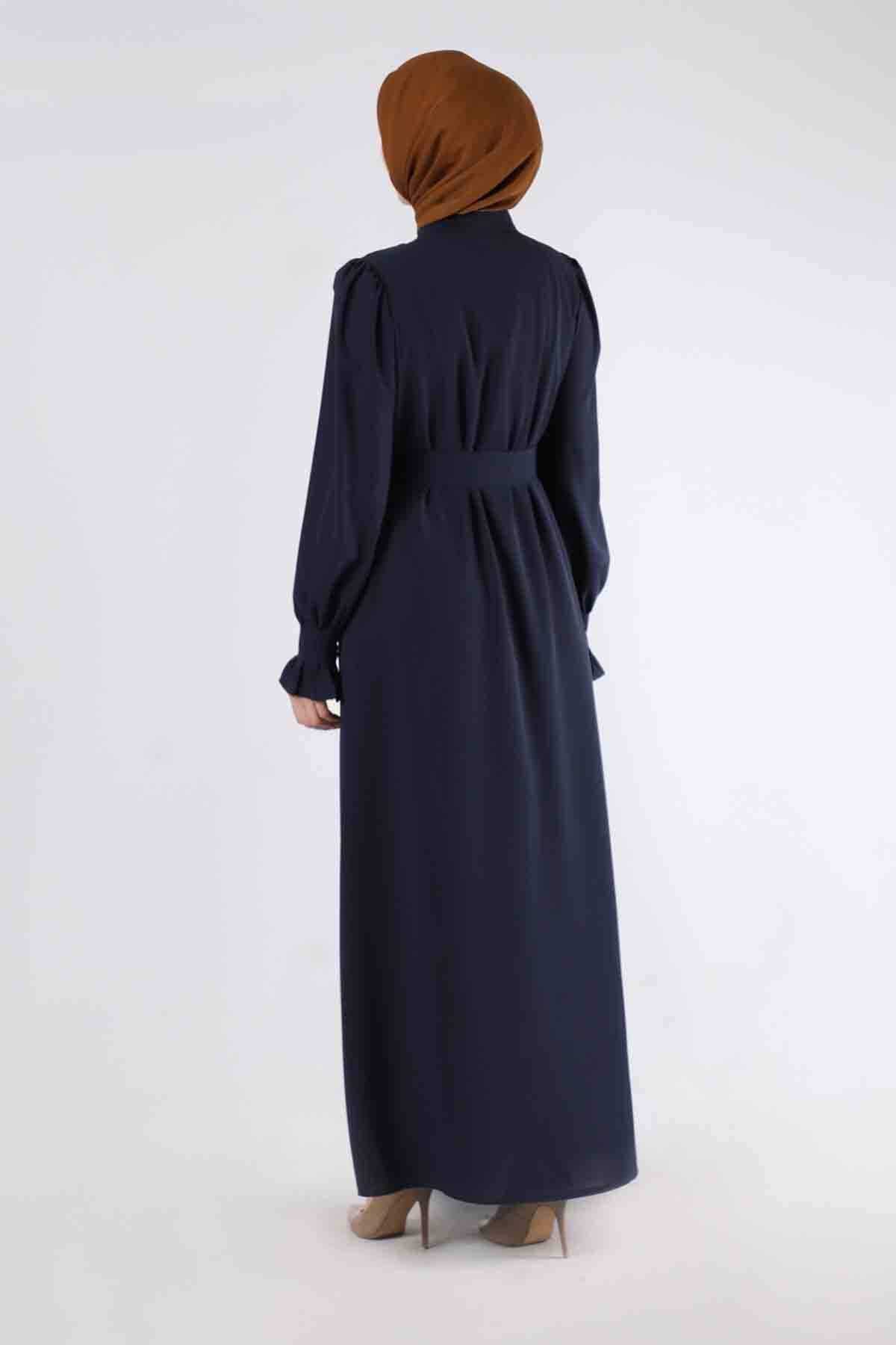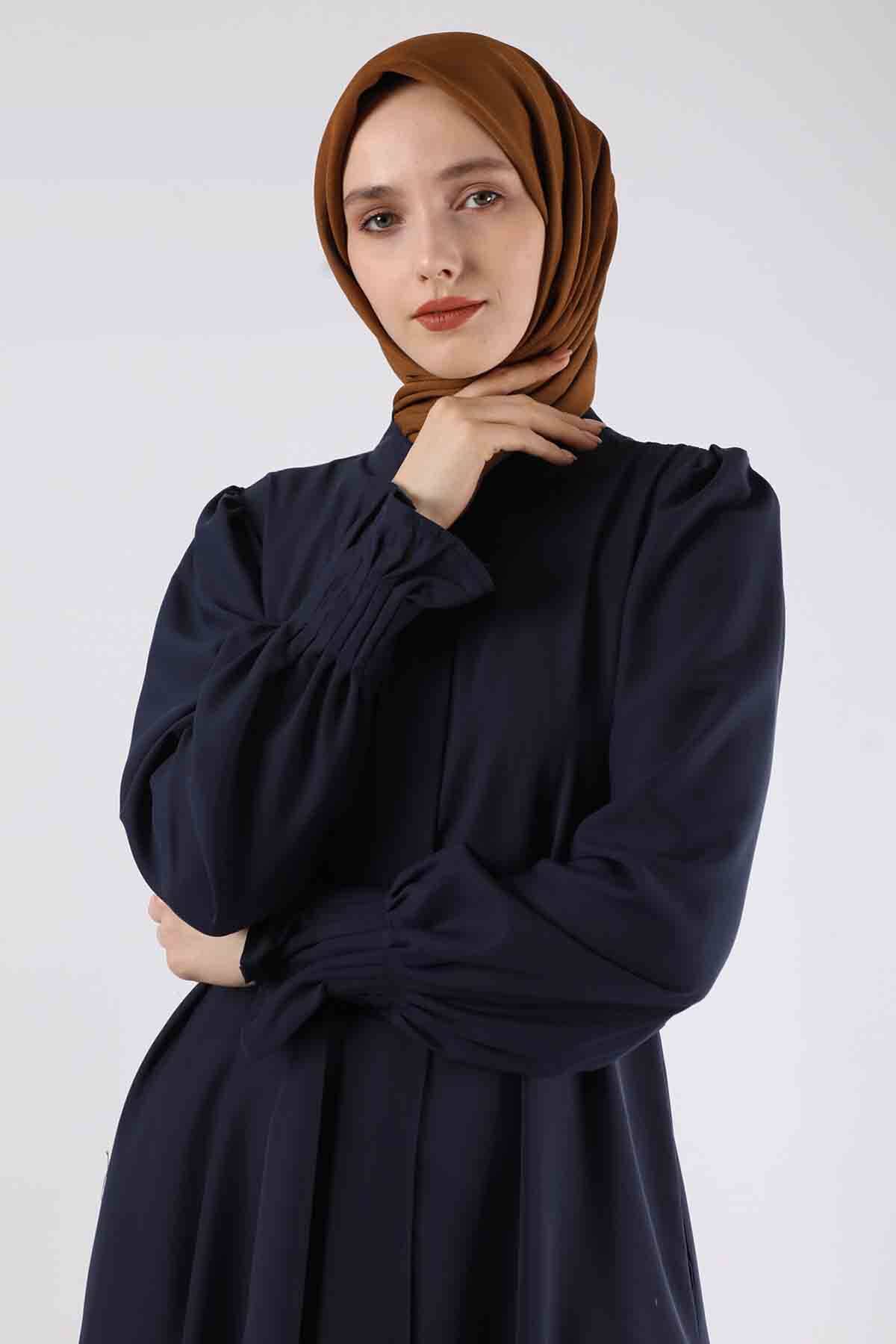 Manşeti Pileli Elbise Ferace Lacivert