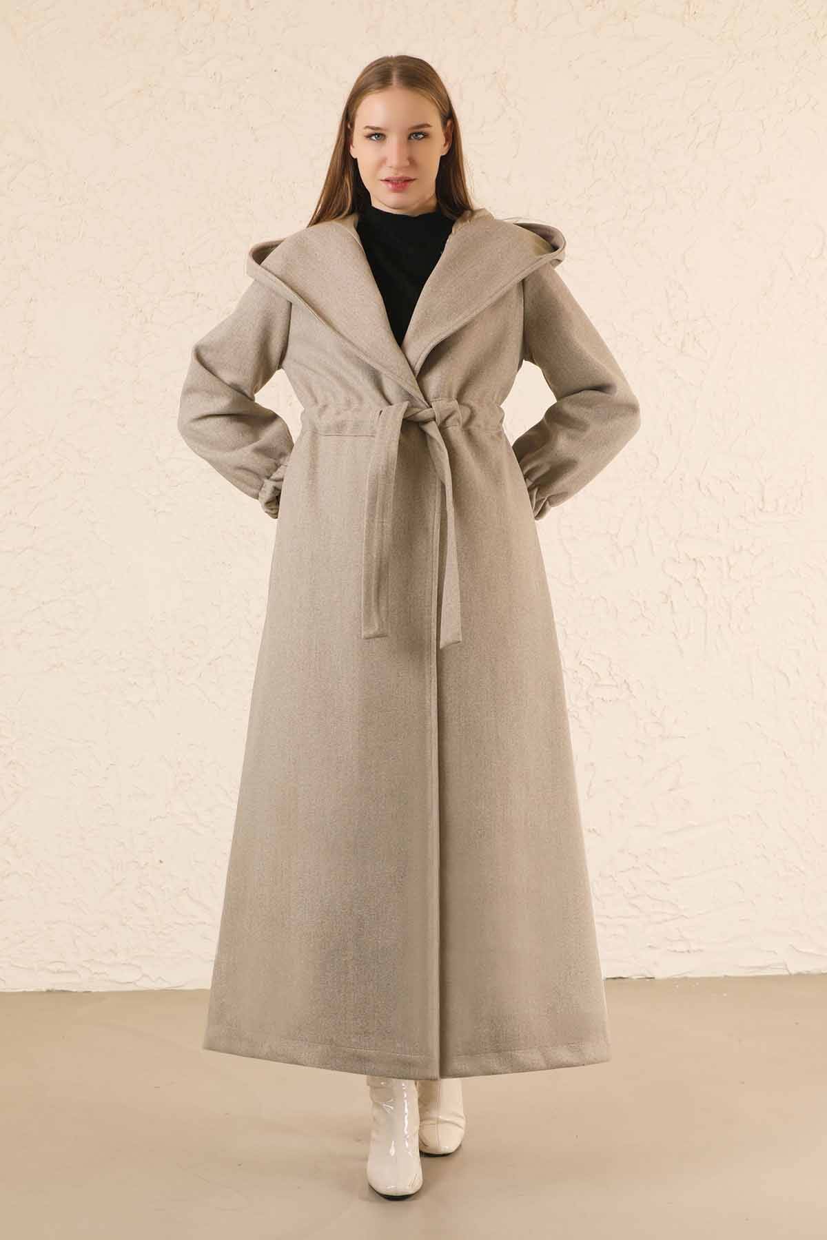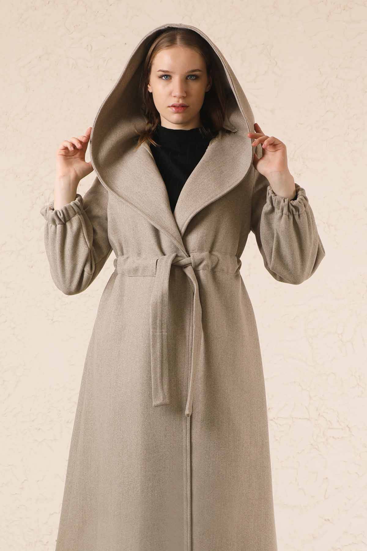 Hooded, waist fastening, no closure, pockets, lining.