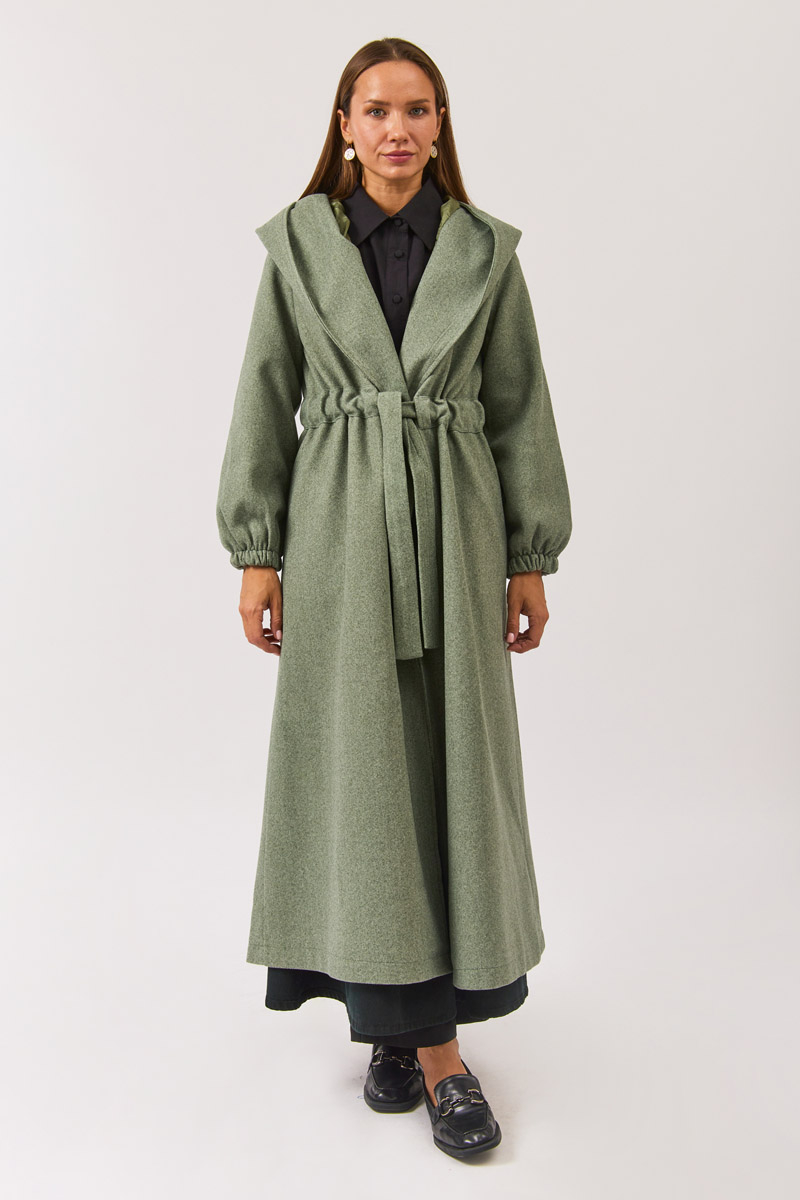 Hooded, waist fastening, no closure, pockets, lining.