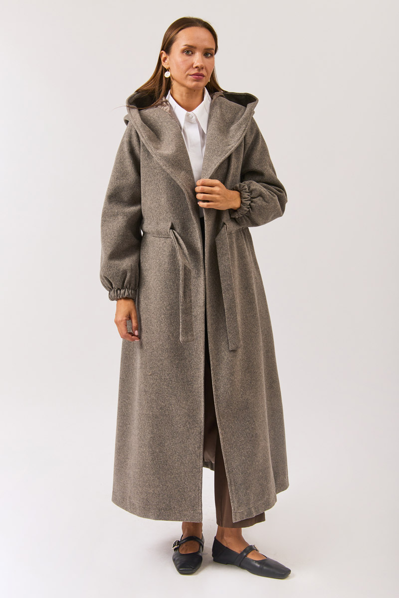 Hooded, waist fastening, no closure, pockets, lining.