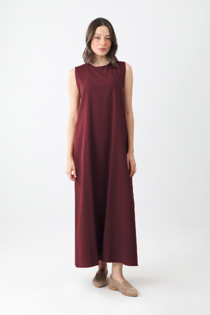 Mayda Abaya Takım Bordo. İç elbise bisiklet yakadır, sıfır kolludur, abaya düşük kolludur, kolları natural biye detaylıdır, önü pile detaylıdır, yandan ceplidir, kuşaklıdır, astarsızdır, Günlük kullanım ve özel günlerinizde tercih edebilirsiniz.