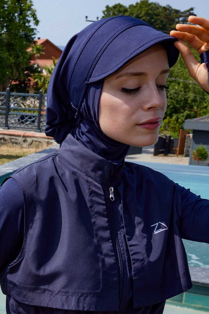 Mayo Şapkası Lacivert. Şapka kısmı mevcuttur, mayo ve haşema üzerinde kullanılır, deniz ve havuzda kullanıma uygundur.