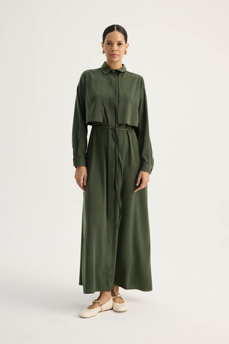 Medine İpeği Elbise Yeşil. Gömlek yakalıdır. Gizli düğmelidir. Rüzgarlık detaylıdır. Yandan ceplidir. İnce kuşaklıdır. Günlük kullanım ve özel günlerinizde tercih edebilirsiniz.