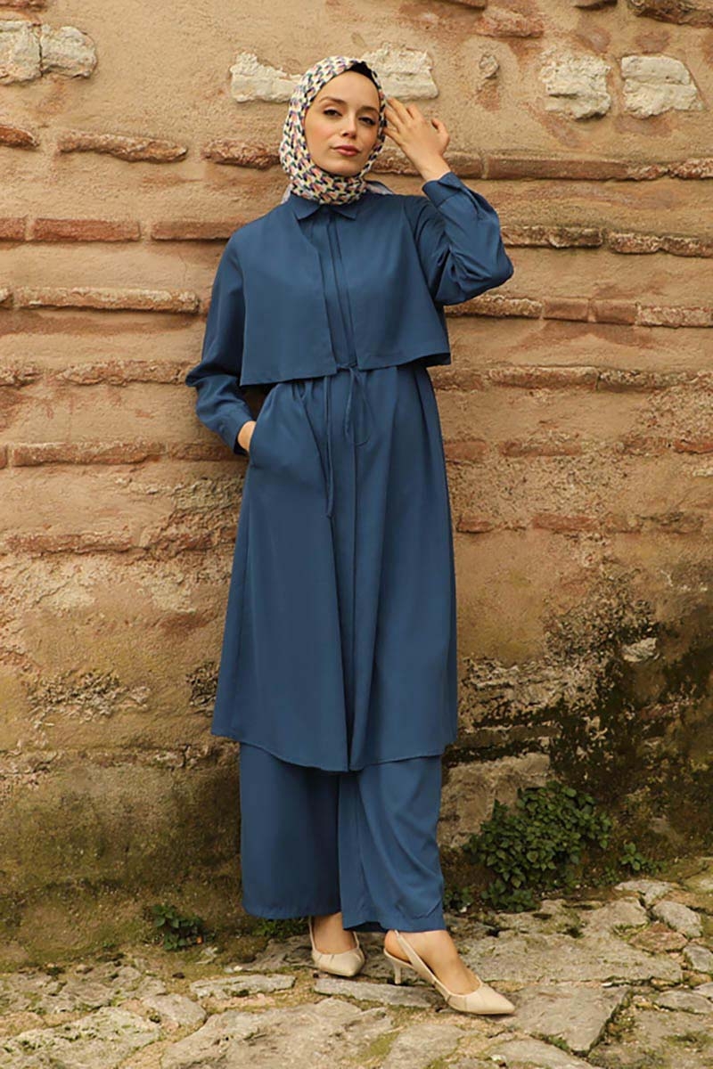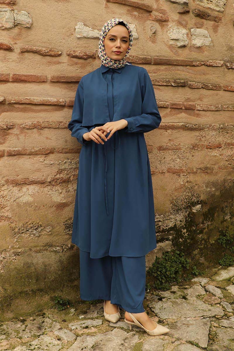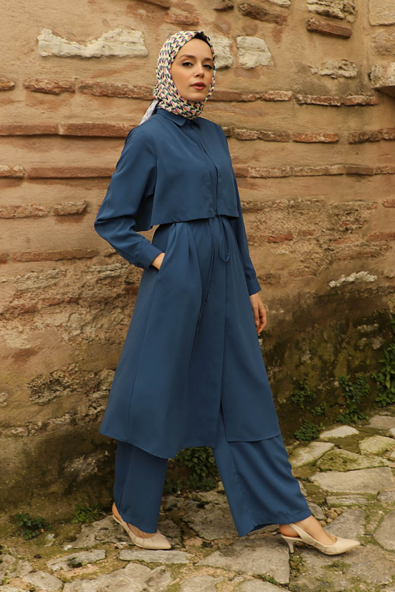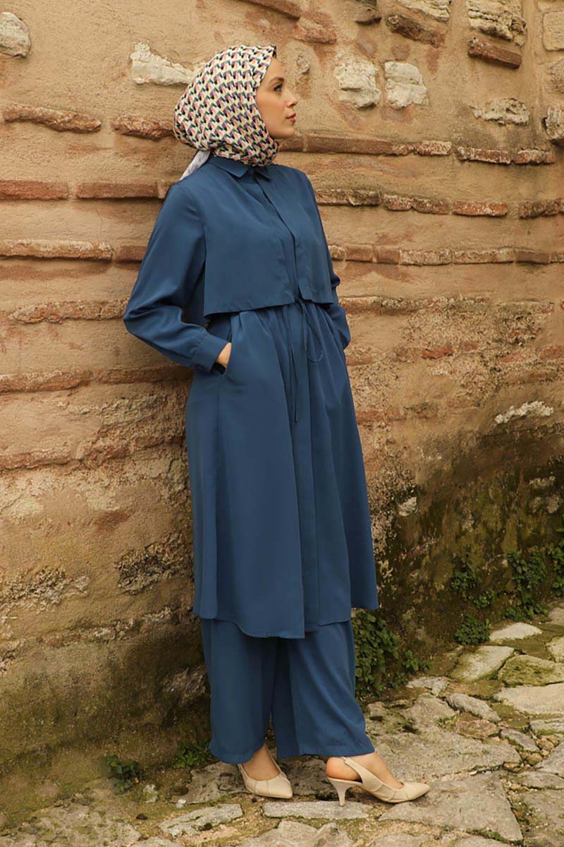 Medine İpeği Rüzgarlıklı Takım İndigo