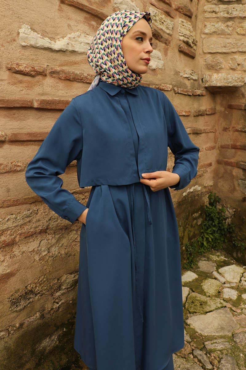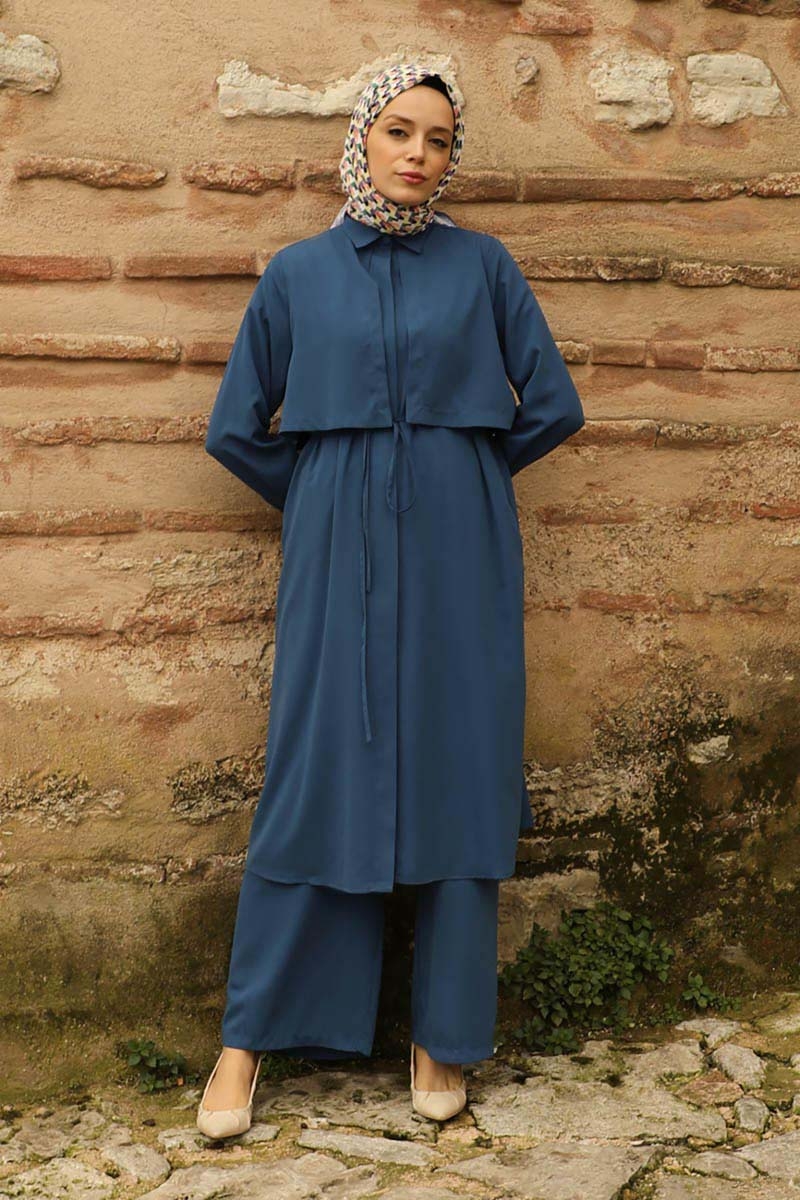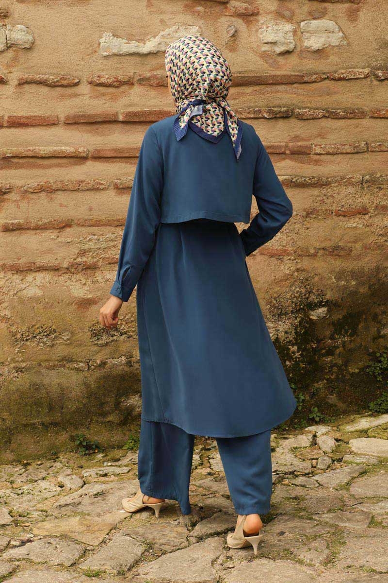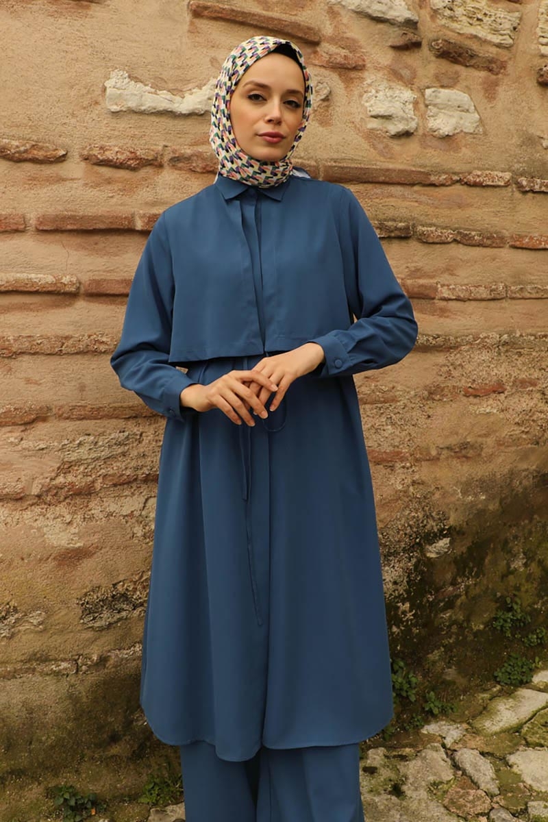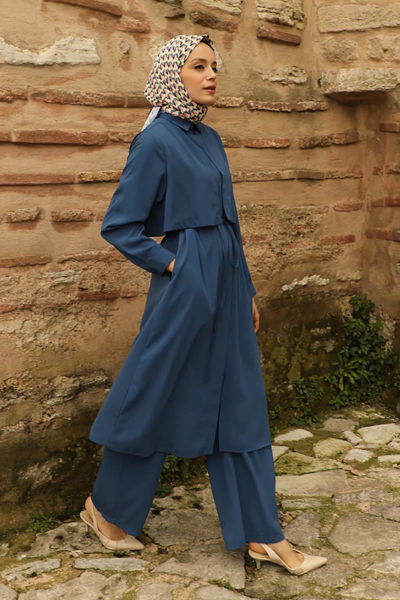 Medine İpeği Rüzgarlıklı Takım İndigo