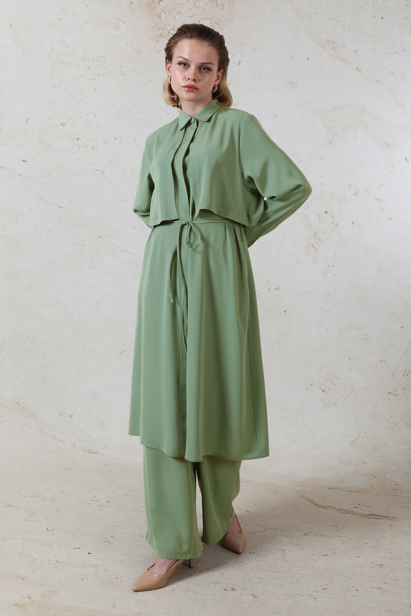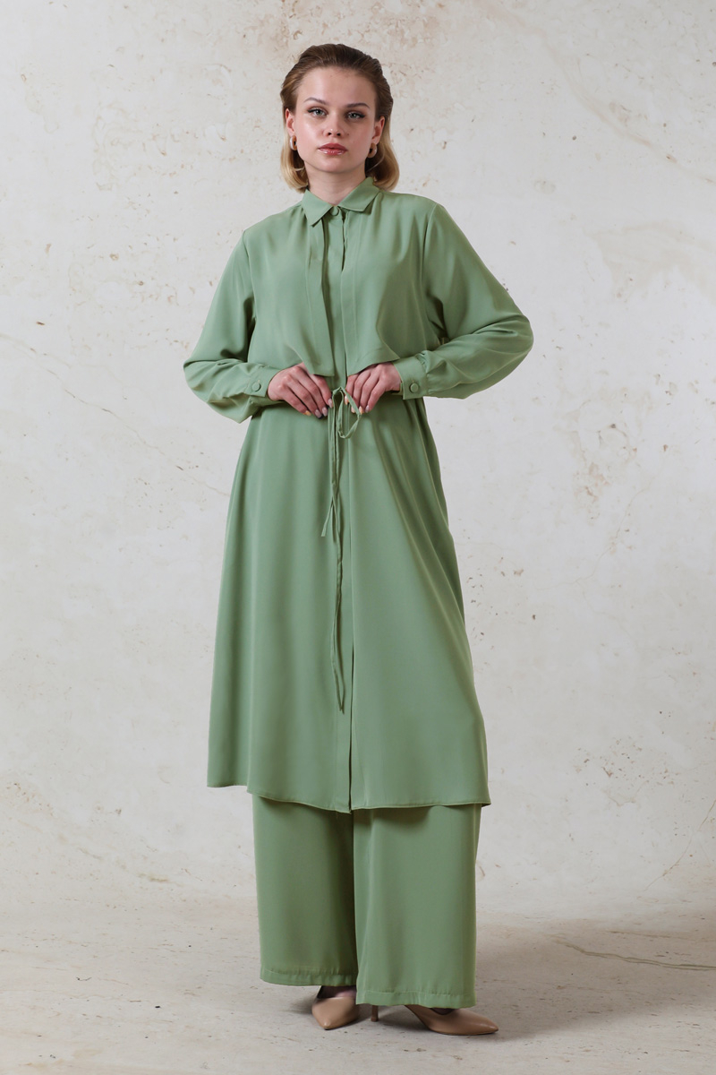 Medine İpeği Rüzgarlıklı Takım Mint. Önden ve arkadan rüzgarlık detaylıdır. Önden gizli düğmelidir. Manşeti düğmelidir. Pantolon beli lastiklidir. Yandan ceplidir. Günlük kullanım ve özel günlerinizde tercih edebilirsiniz.