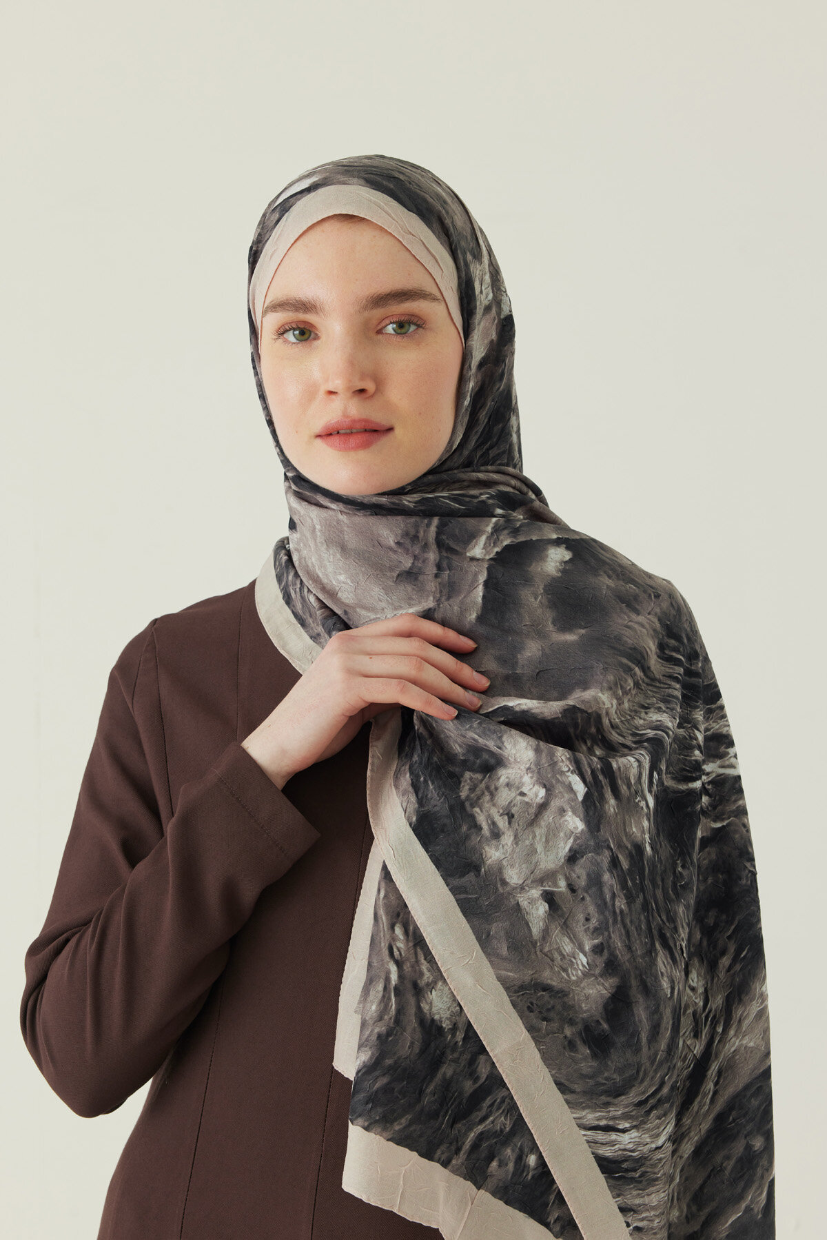 Zarif mermer desenleriyle dikkat çeken Mermer Desenli Şal, sade kombinlere modern bir dokunuş katar. Hafif ve dökümlü yapısı sayesinde gün boyu konforlu bir kullanım sunarken, desenli yüzeyi şallara karakterli bir görünüm kazandırır. Günlük kullanımdan özel kombinlere kadar pek çok stile kolayca uyum sağlar.