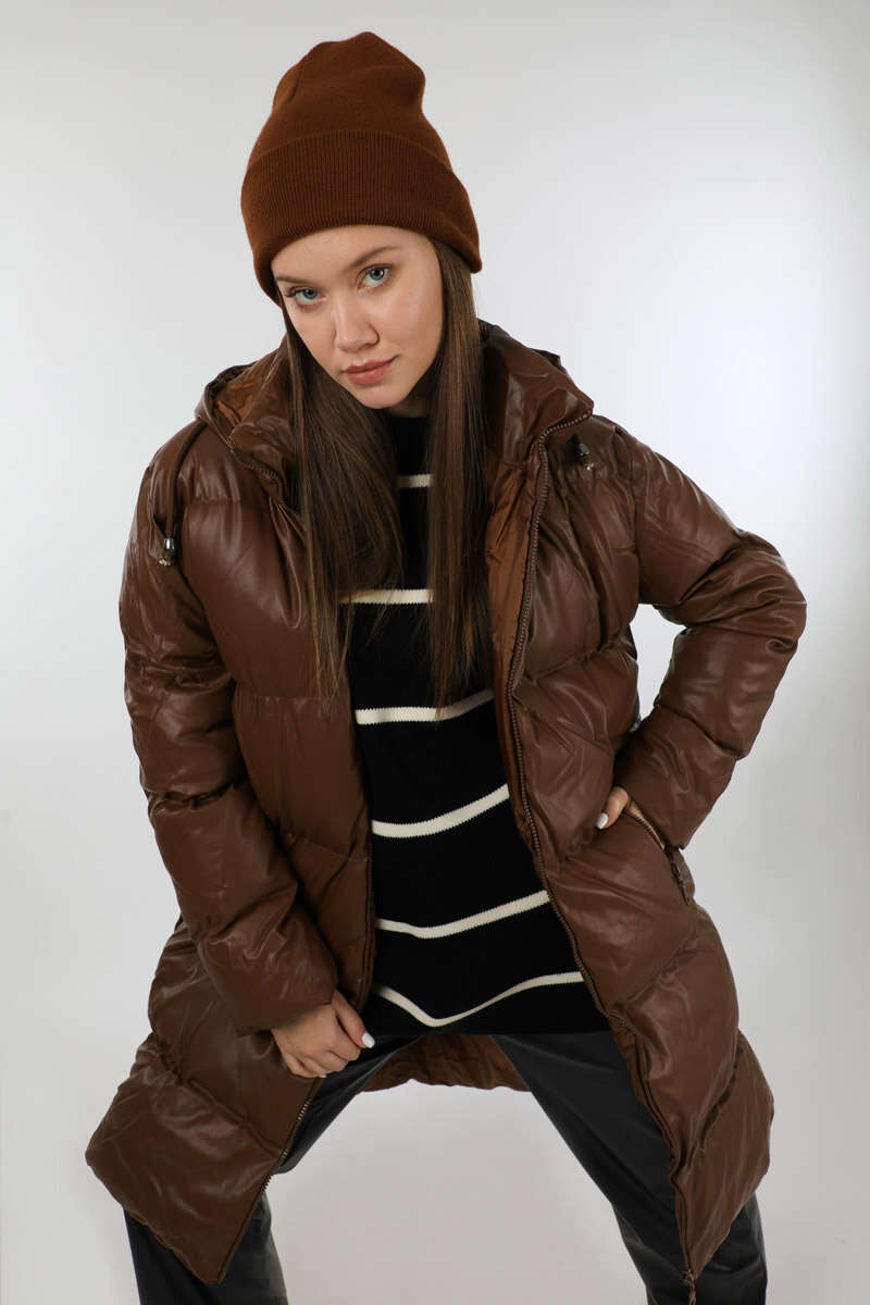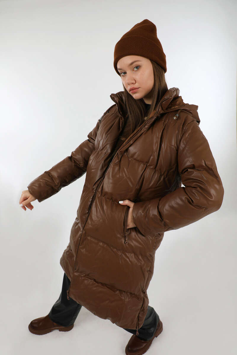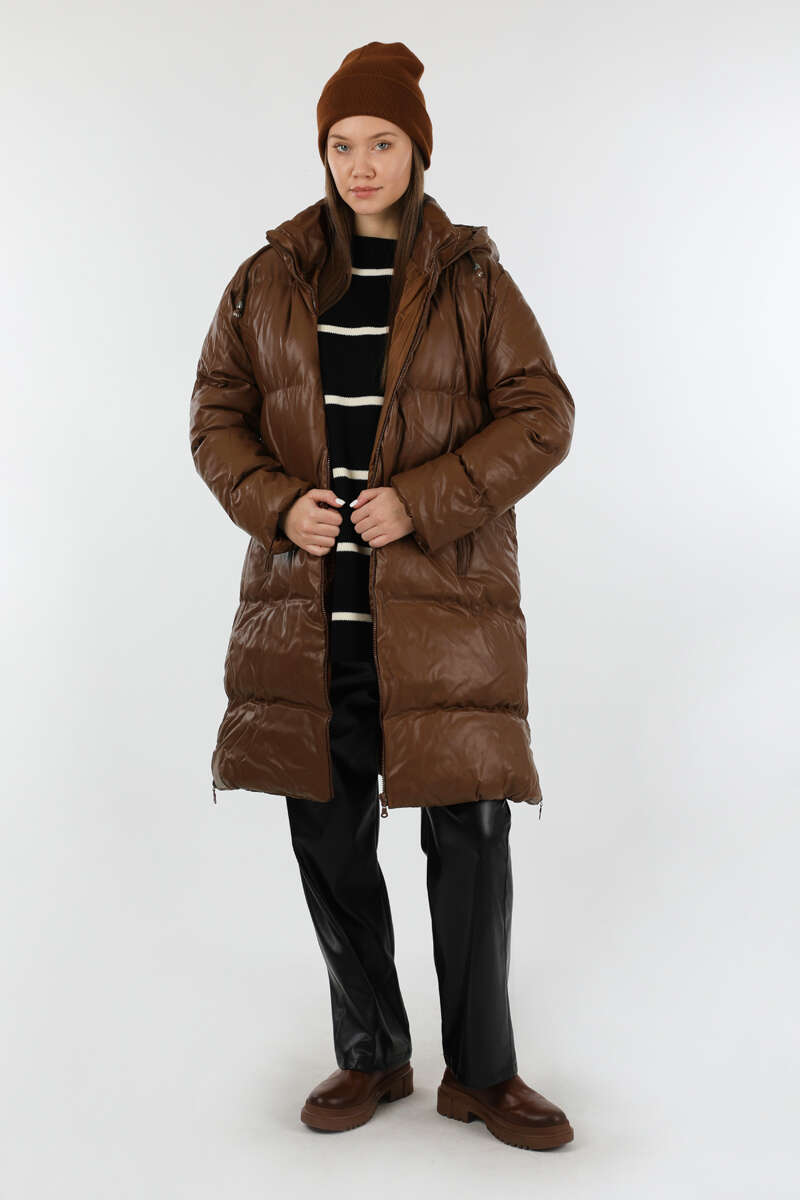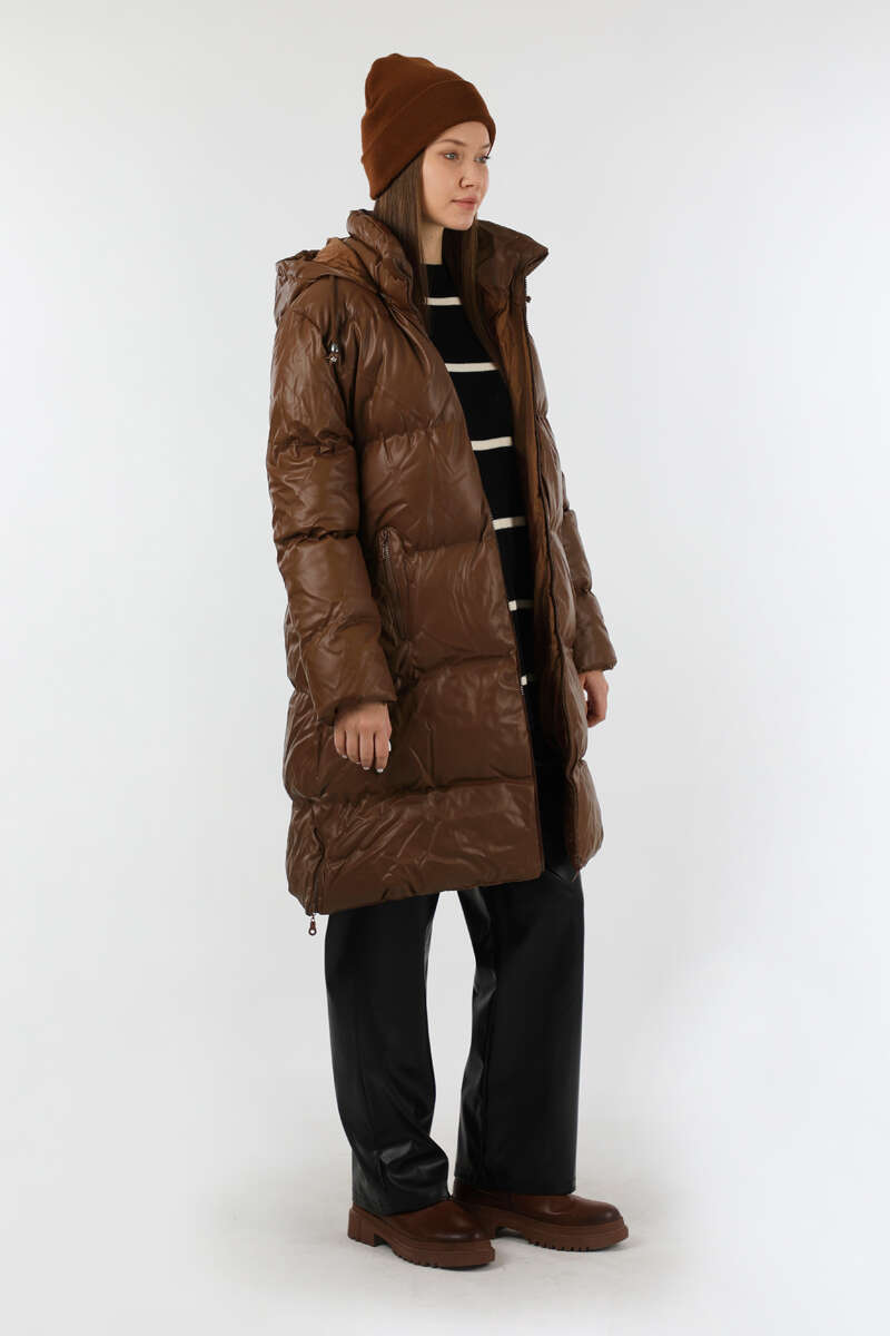 Midi Boy Şişme Mont Kahverengi. Balıkçı yakadır. Deri görünümlü kapitone mont. Kapüşonludur. Fermuar cep detaylıdır. Önden fermuarlıdır. Yan etek fermuar detaylıdır. Astarlıdır. Günlük kullanım ve özel günlerinizde tercih edebilirsiniz.