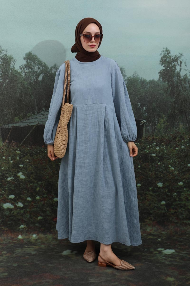Müslin Klasik Elbise Bebe Mavisi