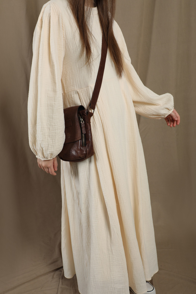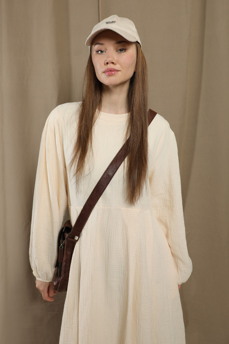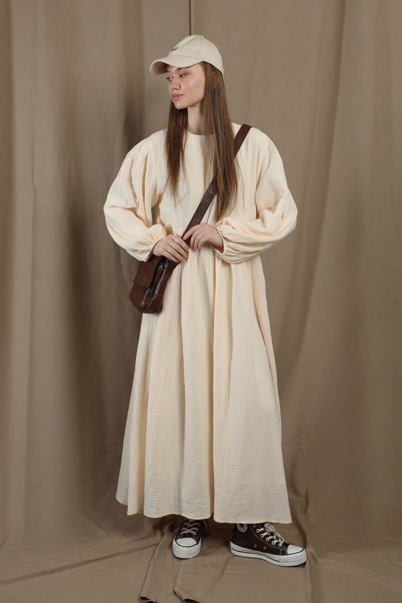Müslin Klasik Elbise Krem