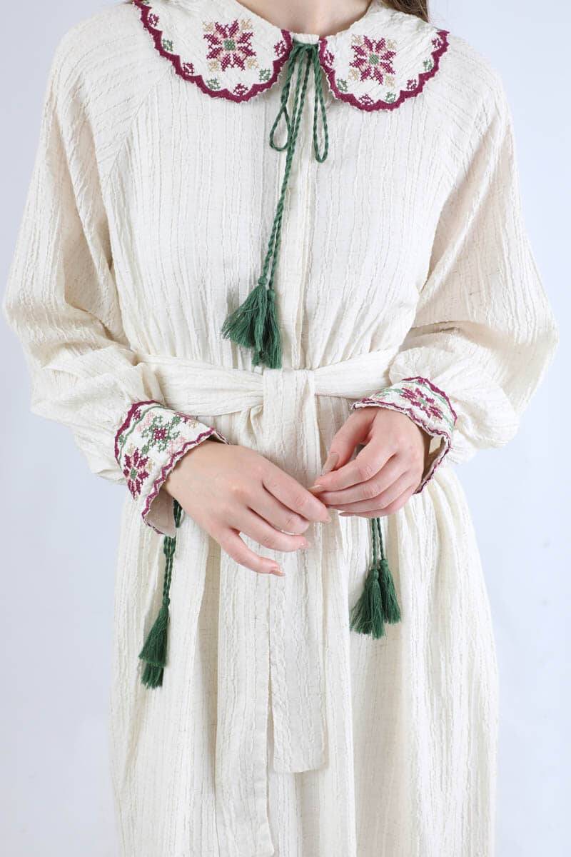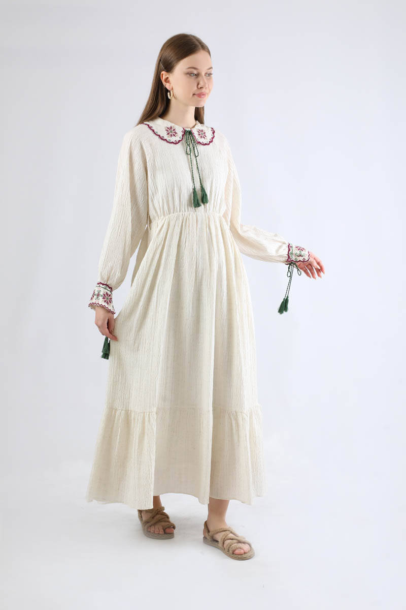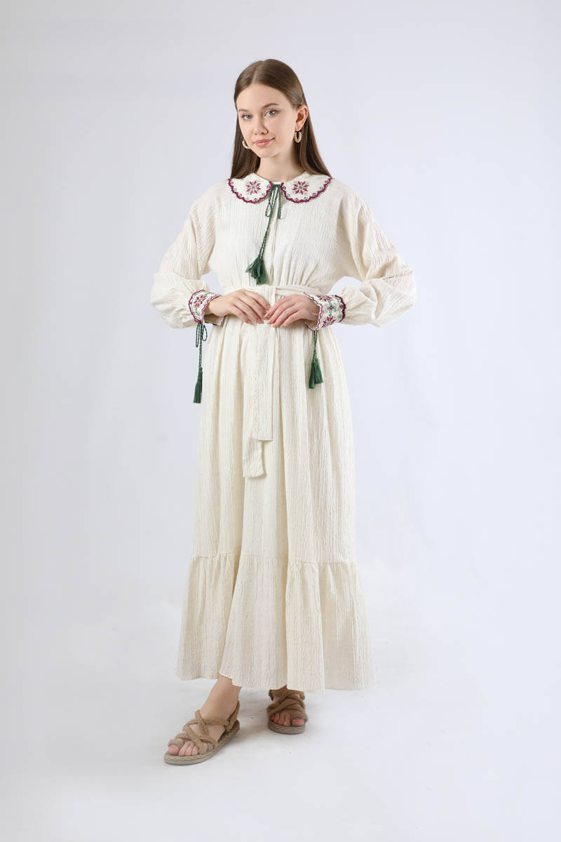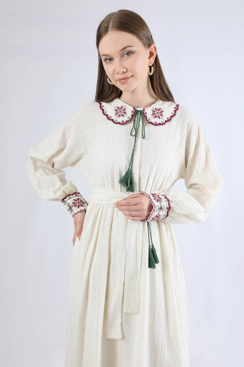 Nakışlı Bebe Yaka Elbise Bordo. Bebe yakalıdır. yakası nakışlıdır. reglan kolludur. kol manşeti nakışlıdır. Eteği volanlıdır. Manşeti ve yakası süs püsküllüdür. Kuşakldır. Günlük kullanım ve özel günlerinizde tercih edebilirsiniz.