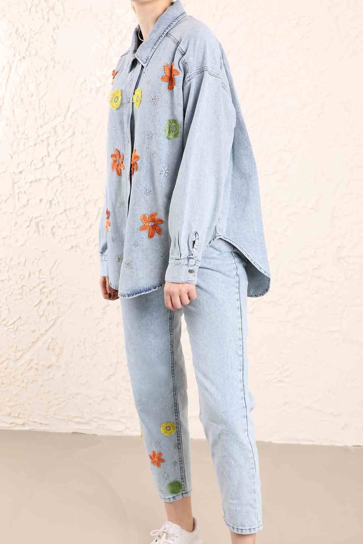 Embroidered Jeans Light Blue. Comfortable pattern. The pipe is a piece.