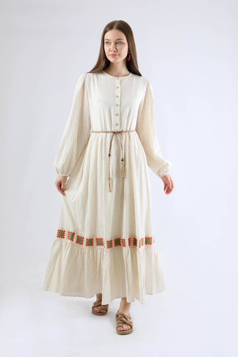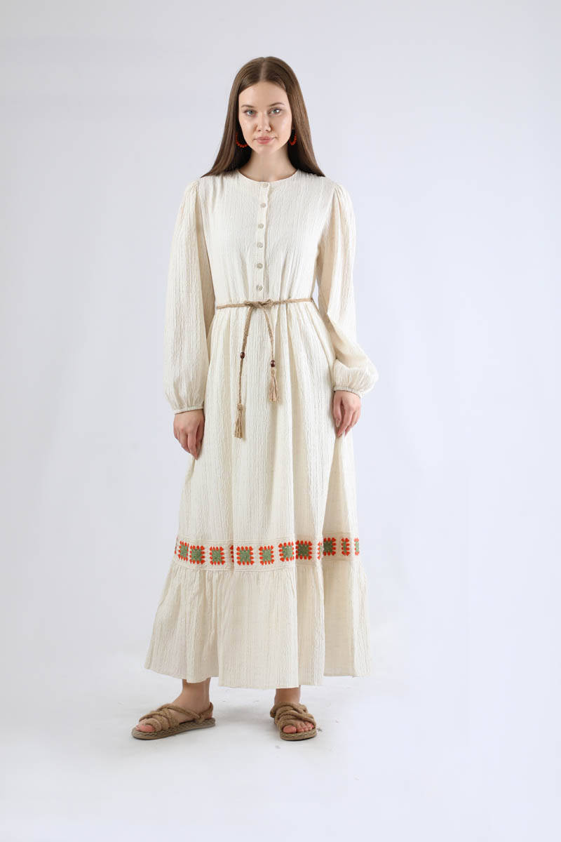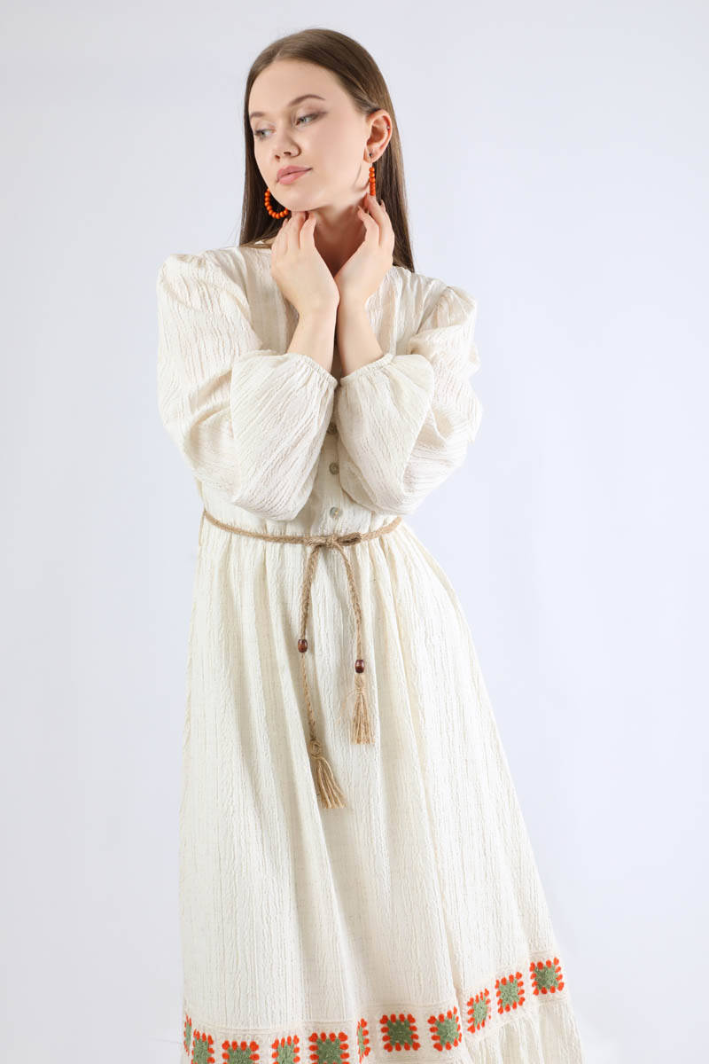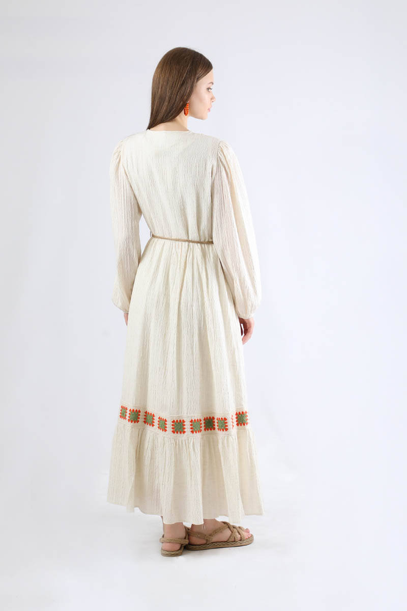 Nakışlı Krinkıl Elbise Mint