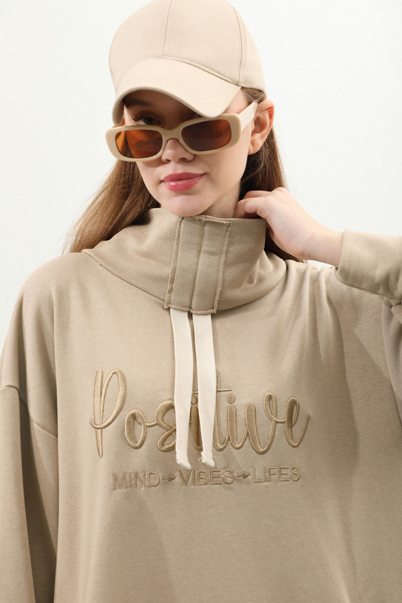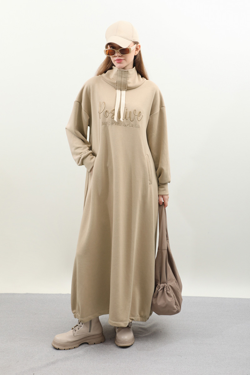 Nakışlı Spor Elbise Taş. Balıkçı yakadır, yaka tünel kordon büzgü detaylıdır, düşük omuzludur, bilekten manşetlidir, filetto ceplidir, nakış detaylıdır, etek yandan lastik detaylıdır. Günlük kullanım ve özel günlerinizde tercih edebilirsiniz.