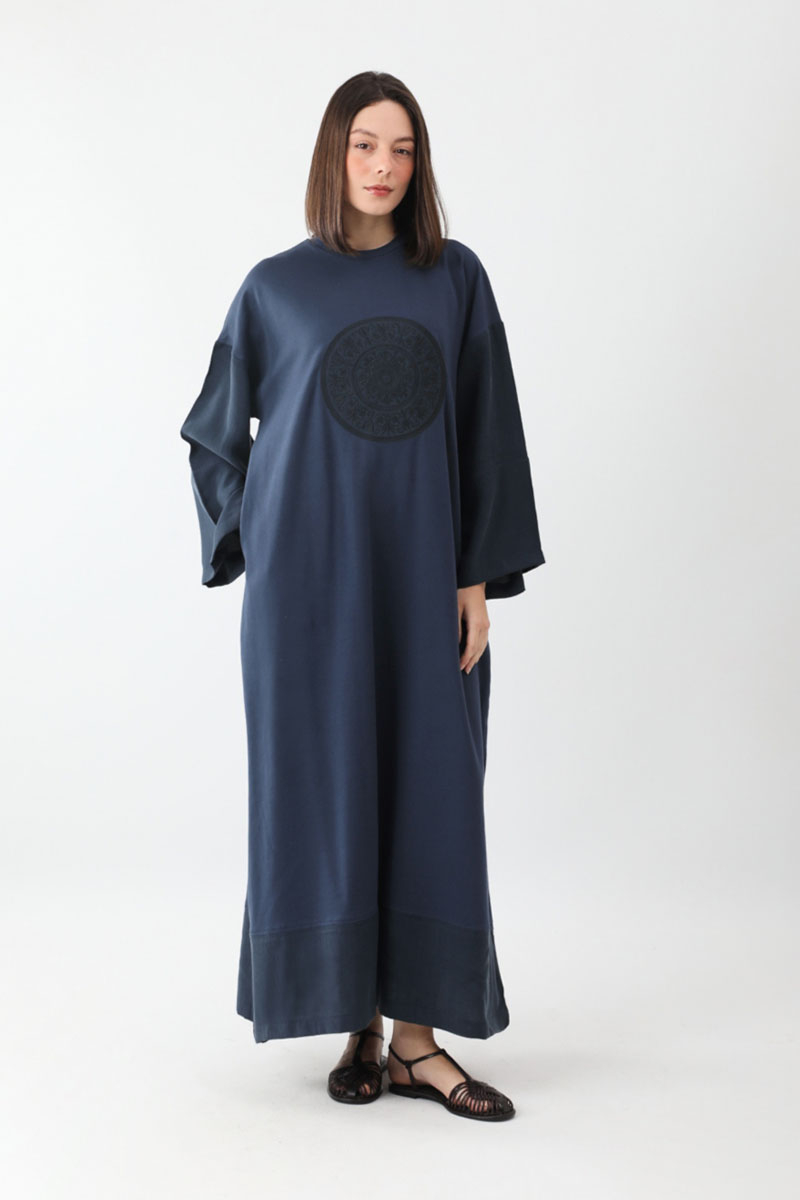 Nakışlı Sweat Elbise Lacivert
