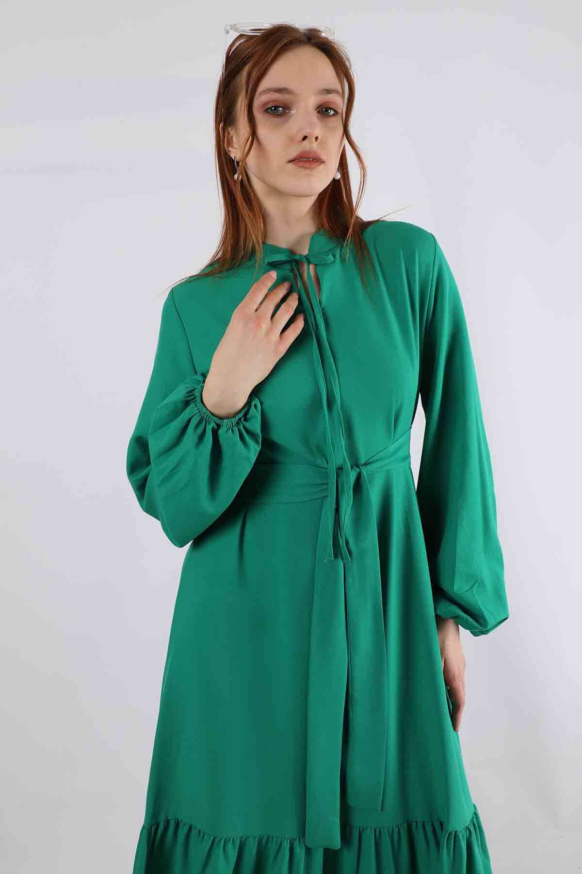 Nare Kuşaklı Elbise Yeşil
