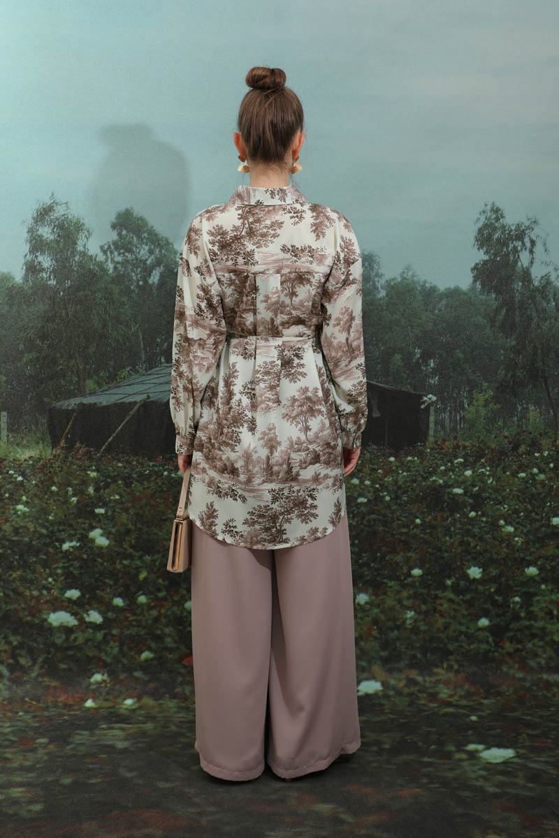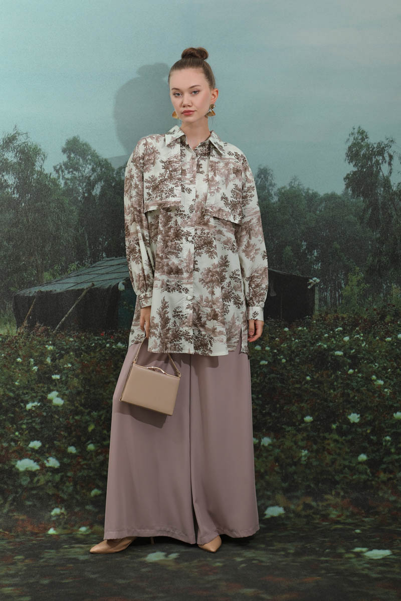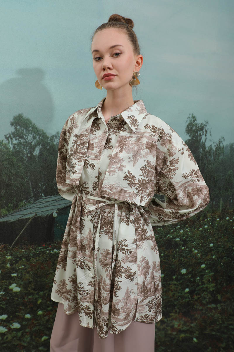 Natural Desen Gömlek Tunik Kahverengi