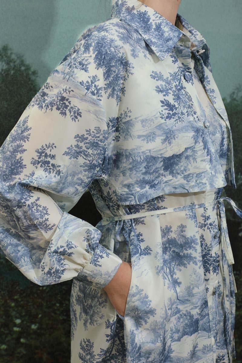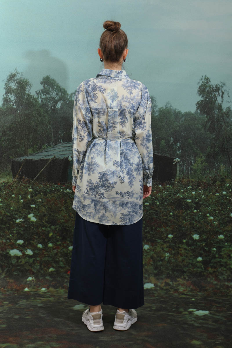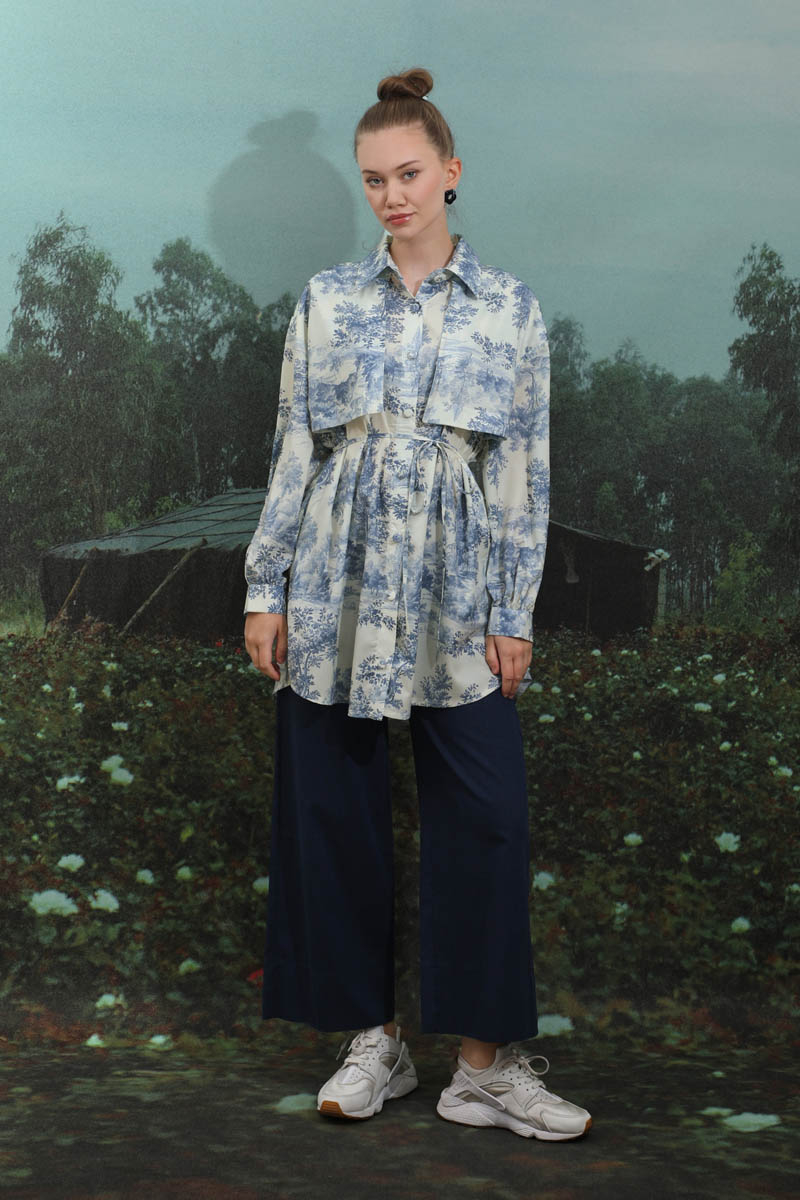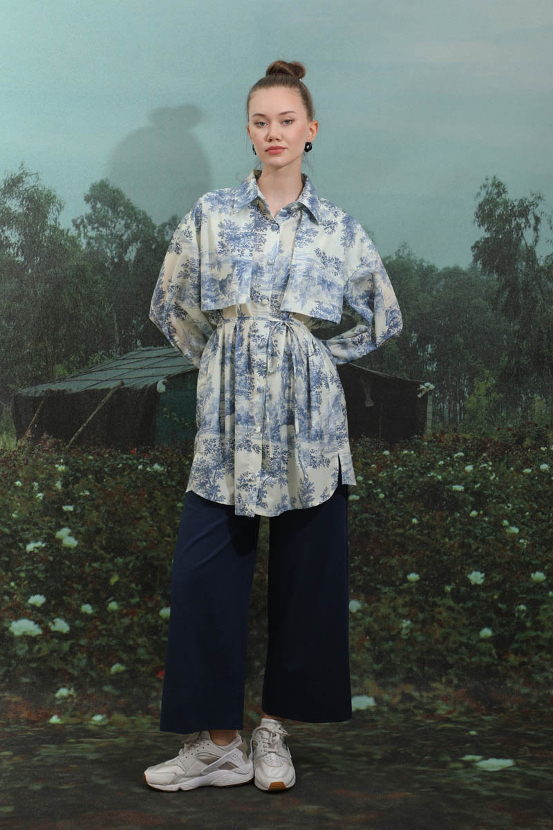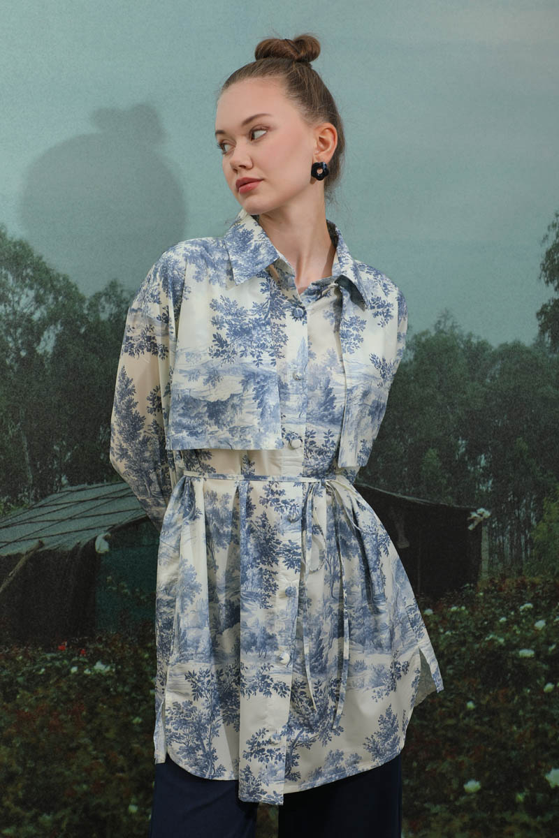 Natural Desen Gömlek Tunik Mavi. Rüzgarlıklı, biye kuşaklı, yandan gizli cepli, gömlek yaka, astarsızdır. Günlük şık kombinlerinizde tercih edebilirsiniz.