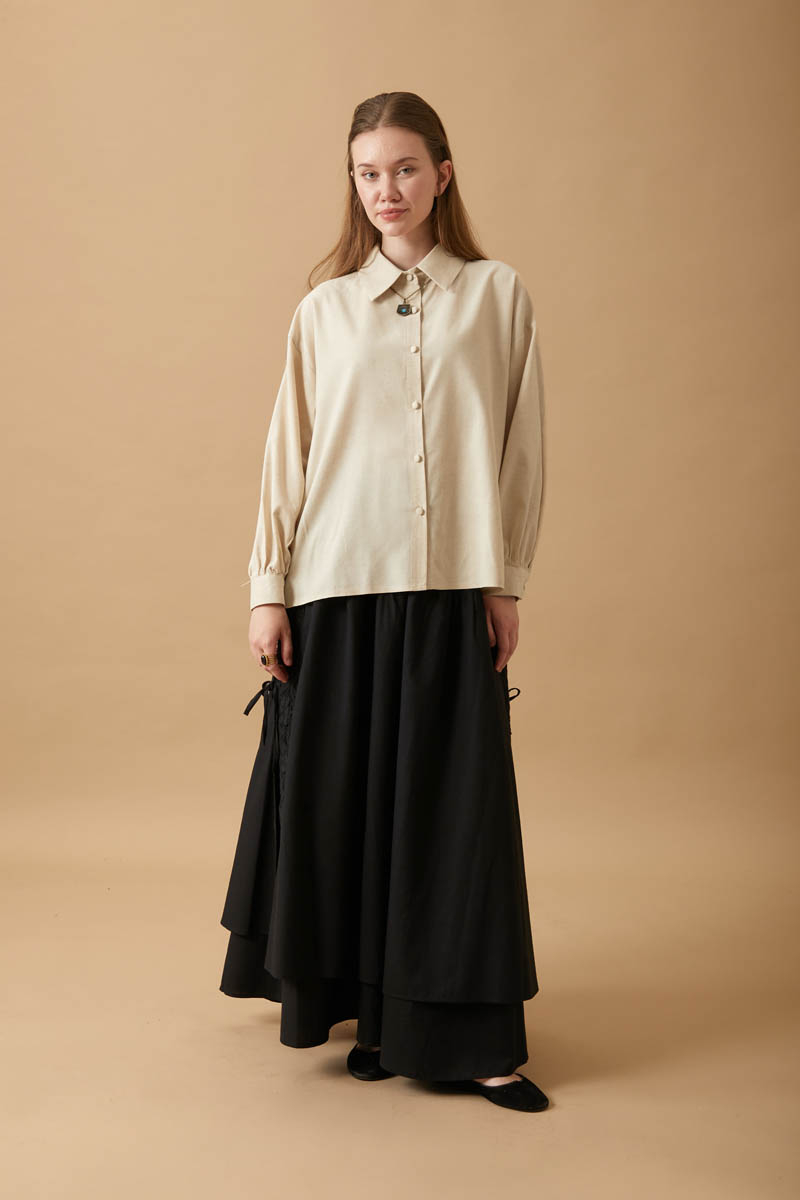 Natural Gömlek Taş, doğal keten kumaştan üretilen gömlek nefes alabilir yapısı sayesinde gün boyu konfor sunarken, nostaljik detaylarıyla da sofistike bir stil yaratıyor. Sürdürülebilir moda anlayışıyla üretilen bu jie takımı, doğaya