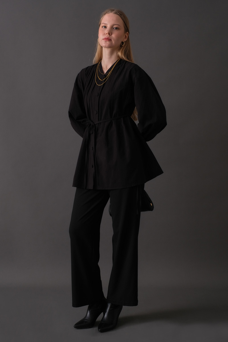 Nervür Detaylı Pamuk Gömlek Siyah