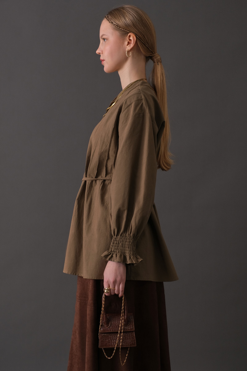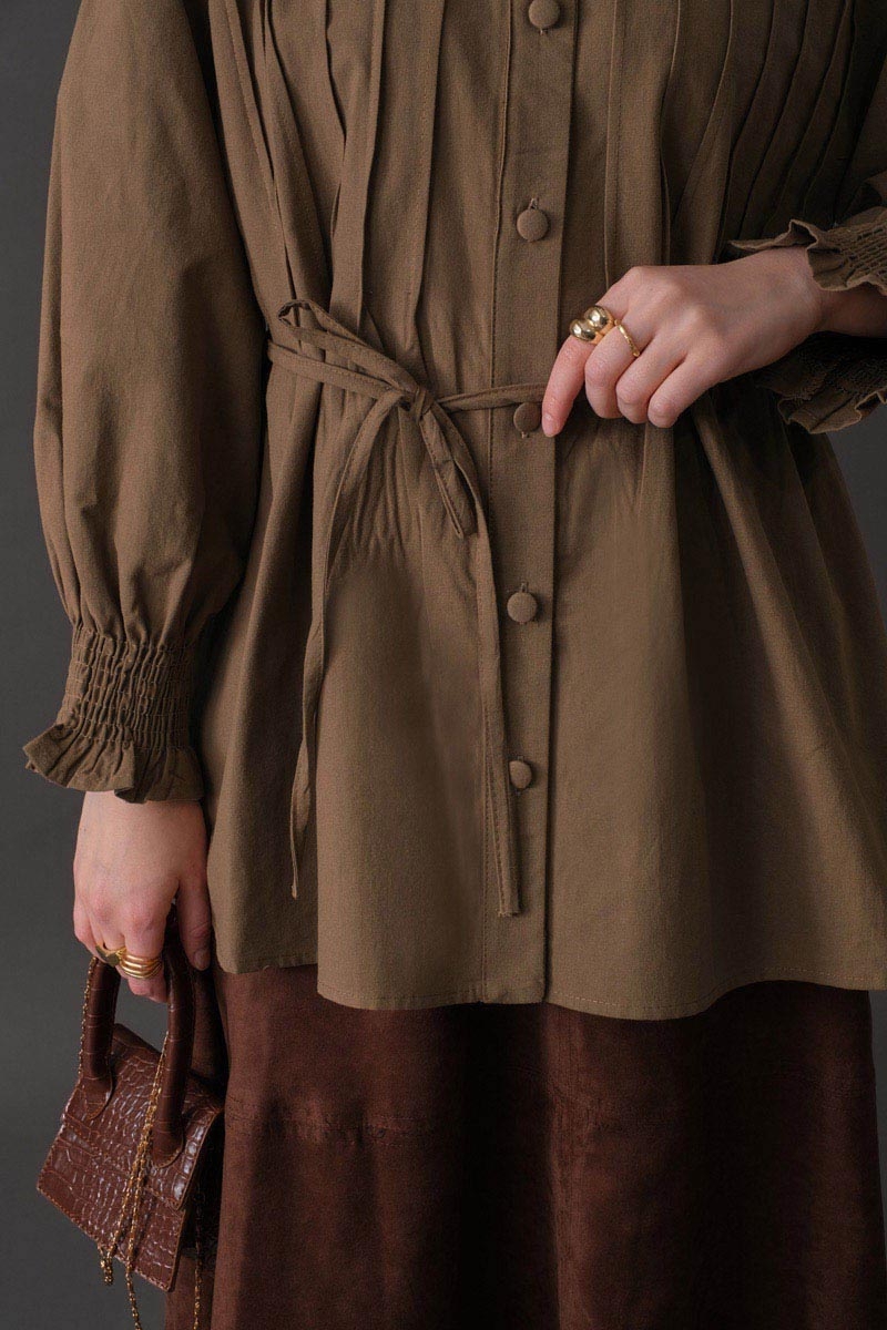 Nervür Detaylı Pamuk Gömlek Toprak