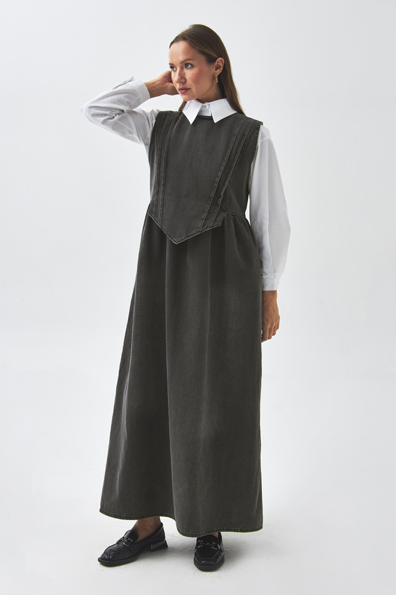 Nervürlü Denim Jile Siyah, modern ve zamansız tasarımıyla günlük ve ofis şıklığının öne çıkan parçalarındandır. Ön kısmındaki nervür detayları ve geometrik formu, klasik denim dokusuna farklı bir karakter katar. Rahat kesimiyle hem tek başına hem de gömlek, triko ya da bluzlarla kolayca kombinlenebilir.