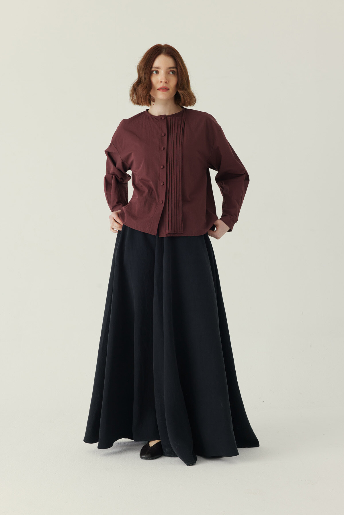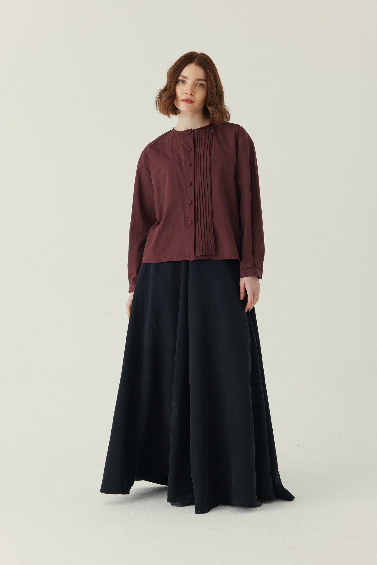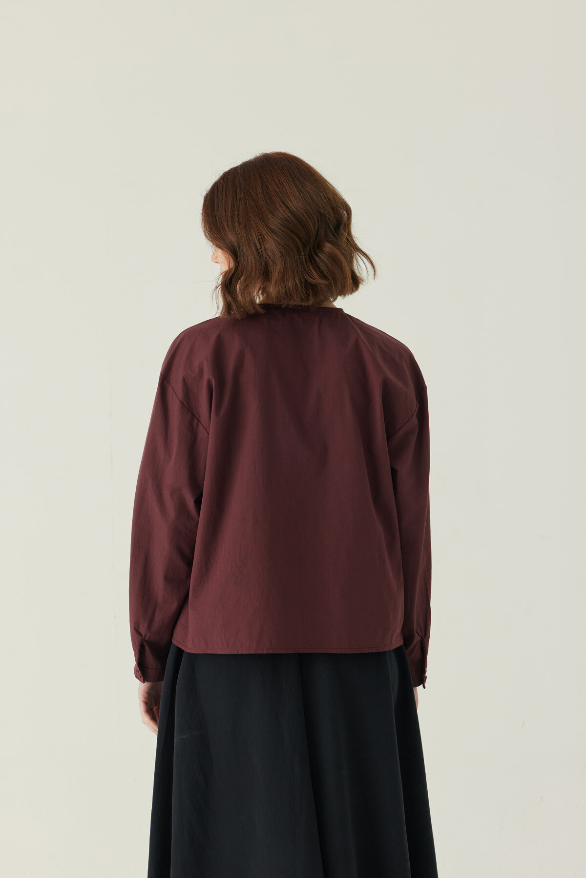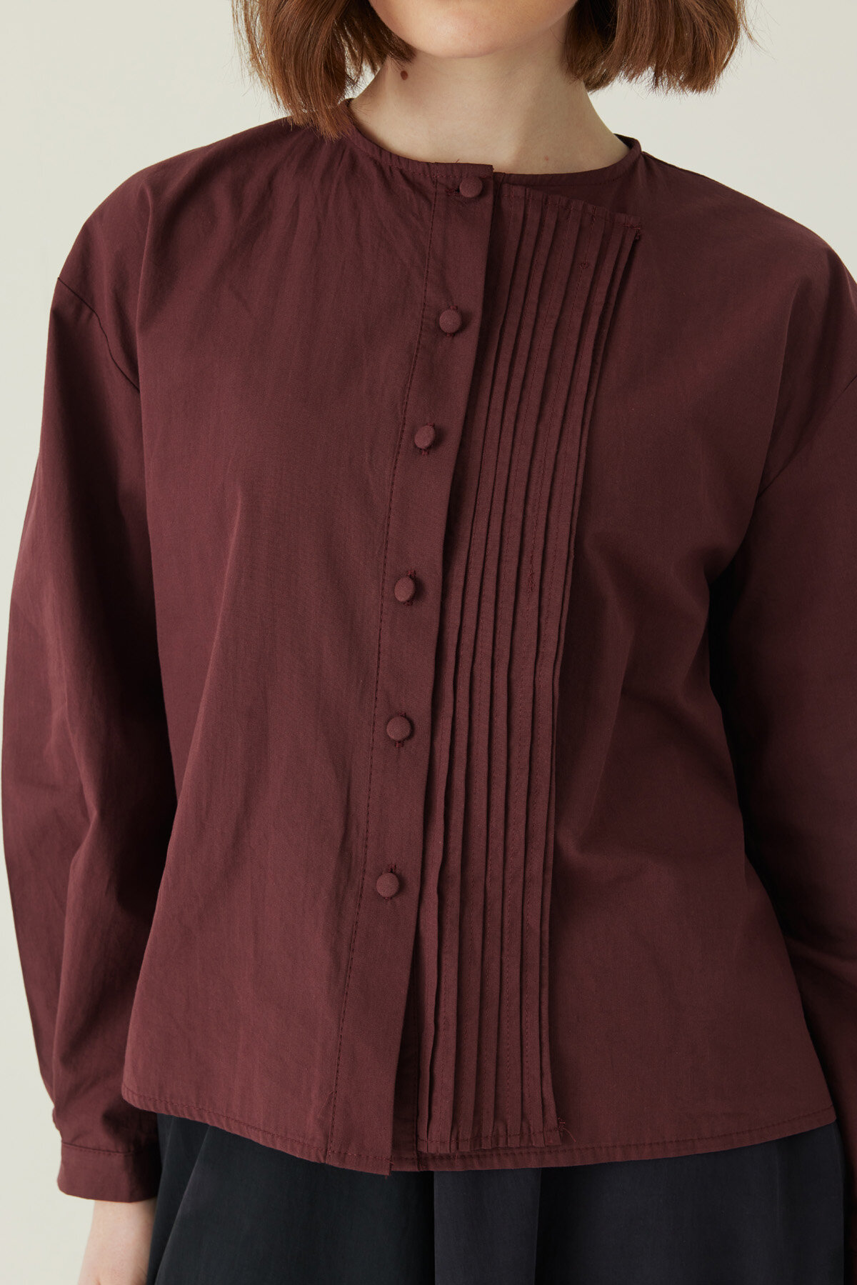 Nervürlü Düşük Kol Gömlek Bordo