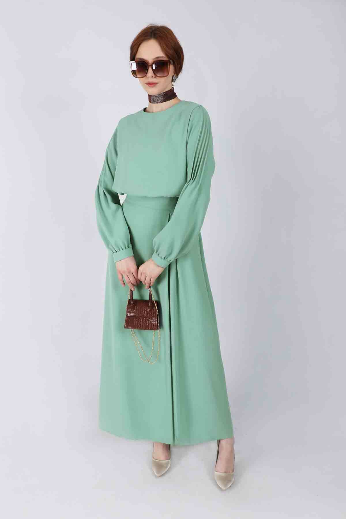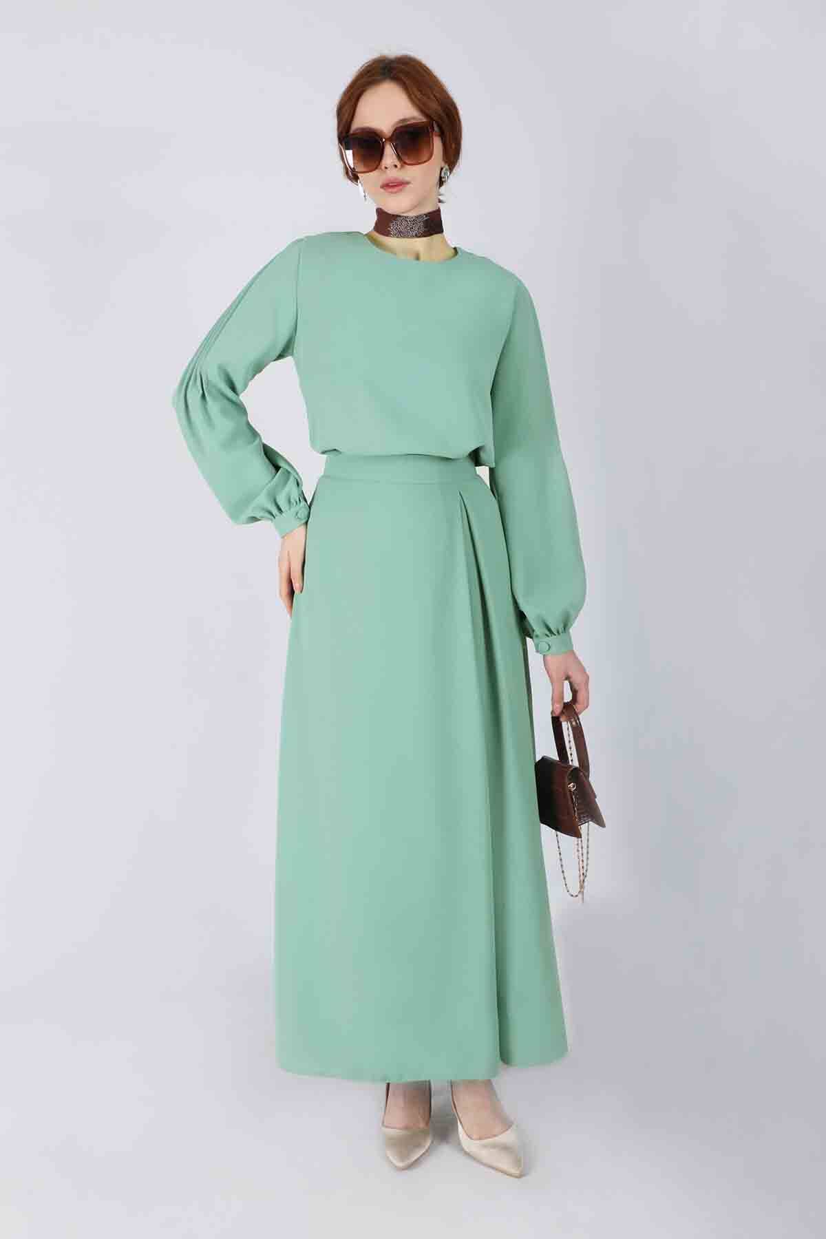 Nervürlü Etek Bluz Takım Mint