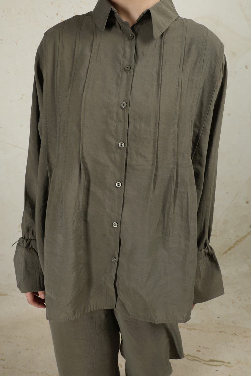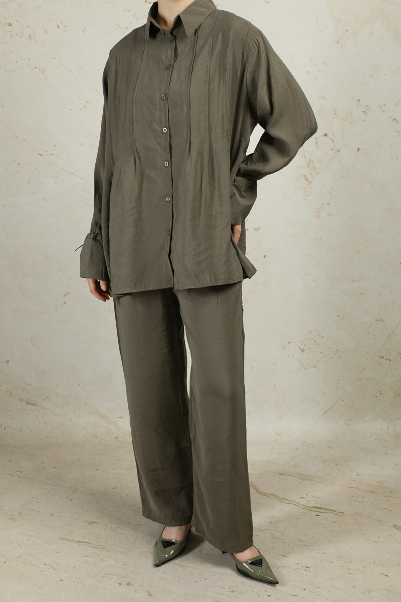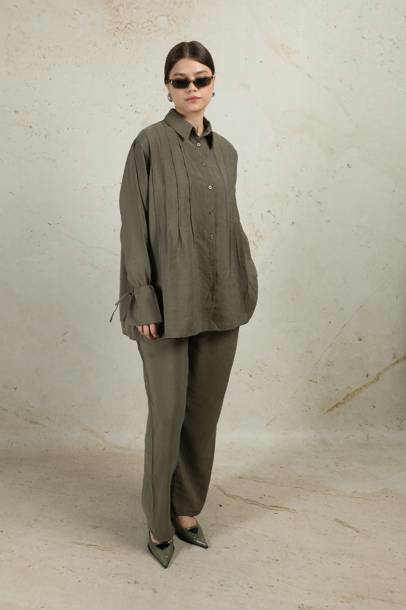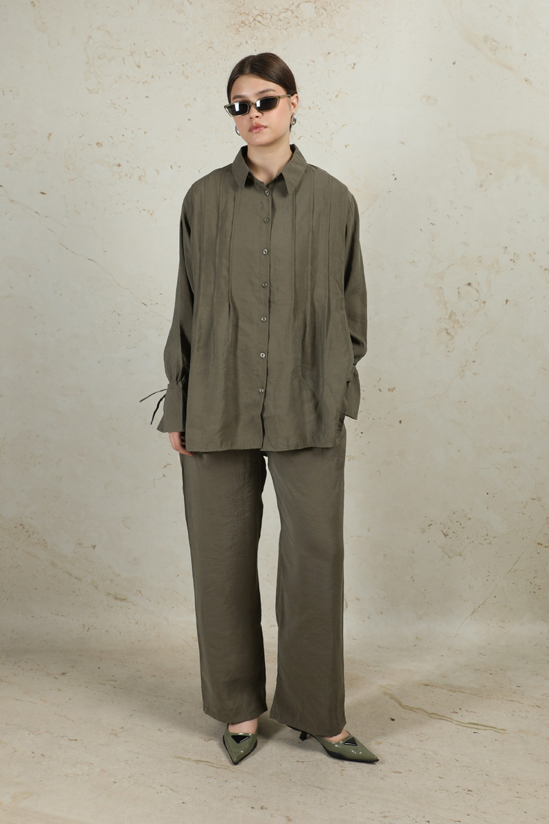 Nervürlü Gömlek Takım Haki