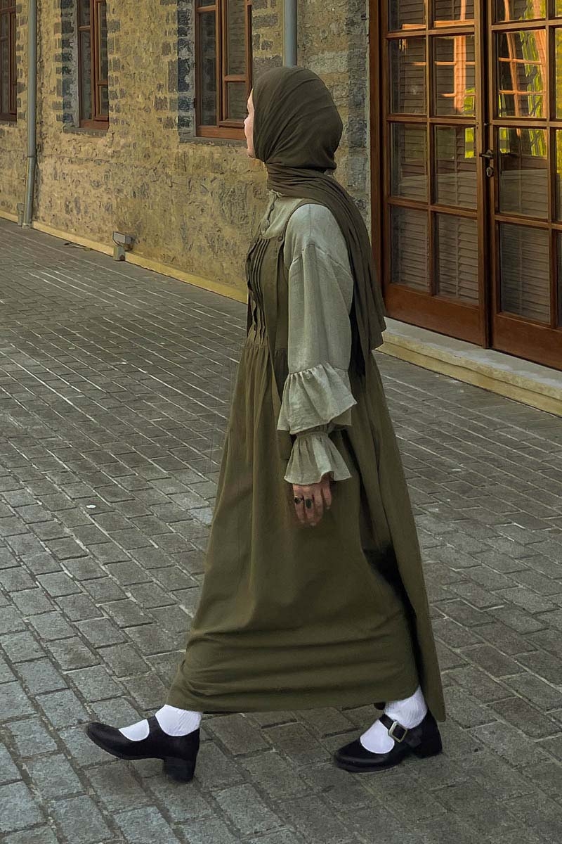 Nervürlü Keten Jile Haki, Doğal ketenin eşsiz dokusuyla tasarlanmış bu nervürlü jile, zarafeti ve rahatlığı bir araya getiriyor. Sıcak yaz günlerinde bile nefes alabilen yapısıyla serin tutan keten kumaşı, cildinize dost bir dokunuş sunar.