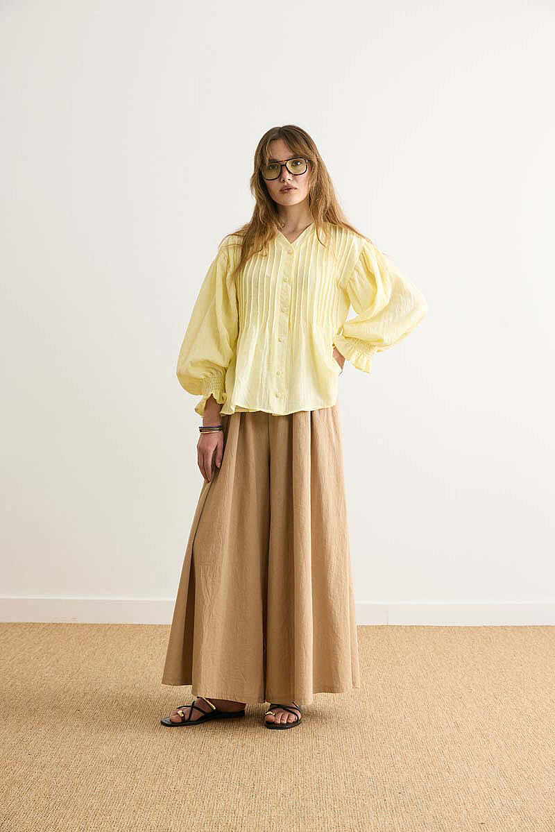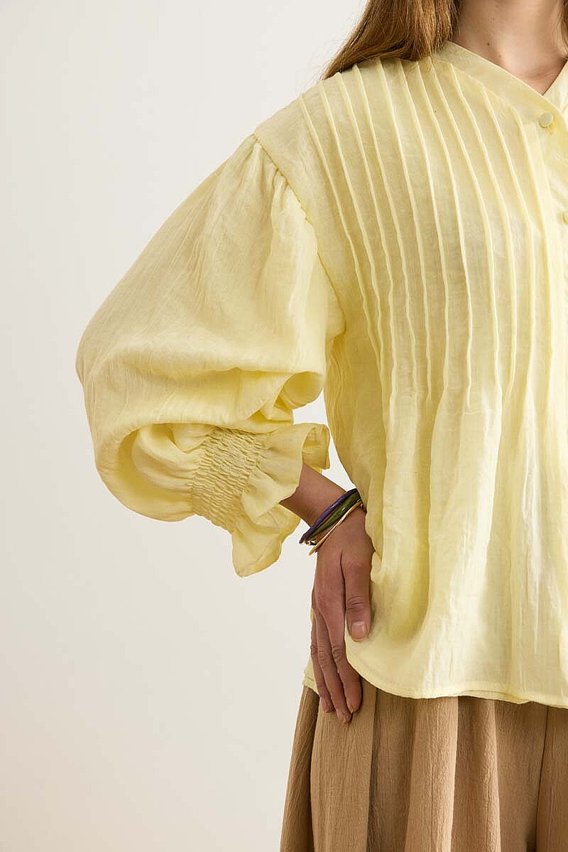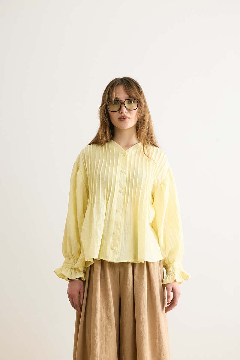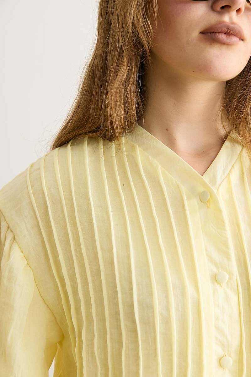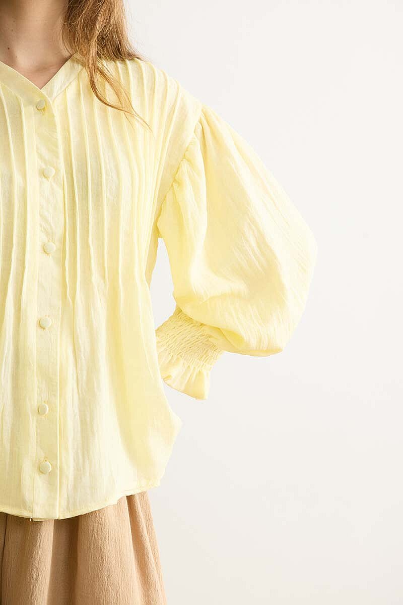 Nervürlü Vual Gömlek Açık Sarı