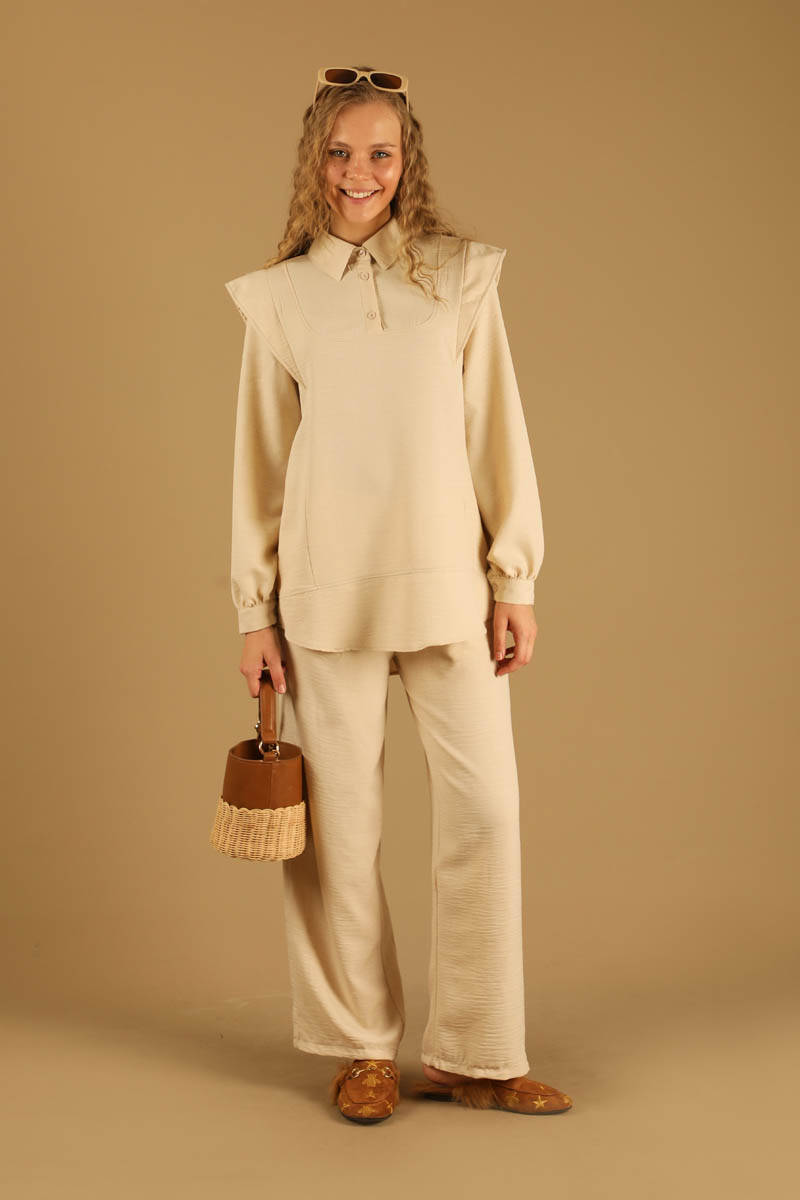 Omuz Detaylı Tunik Takım Krem