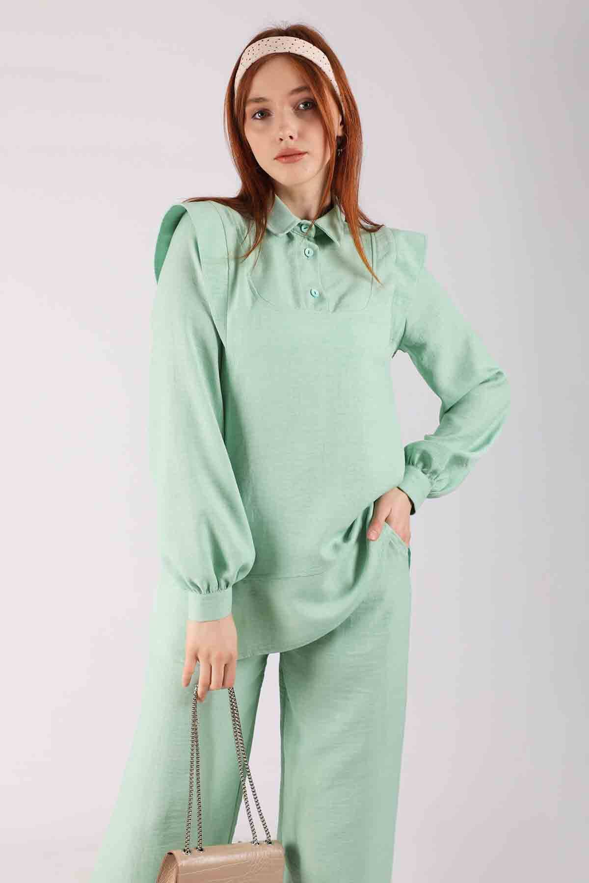 Omuz Detaylı Tunik Takım Su Yeşili