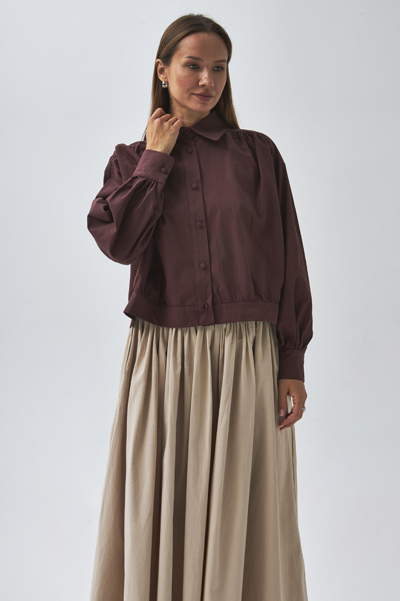 Omuzdan Büzgülü Poplin Gömlek Bordo