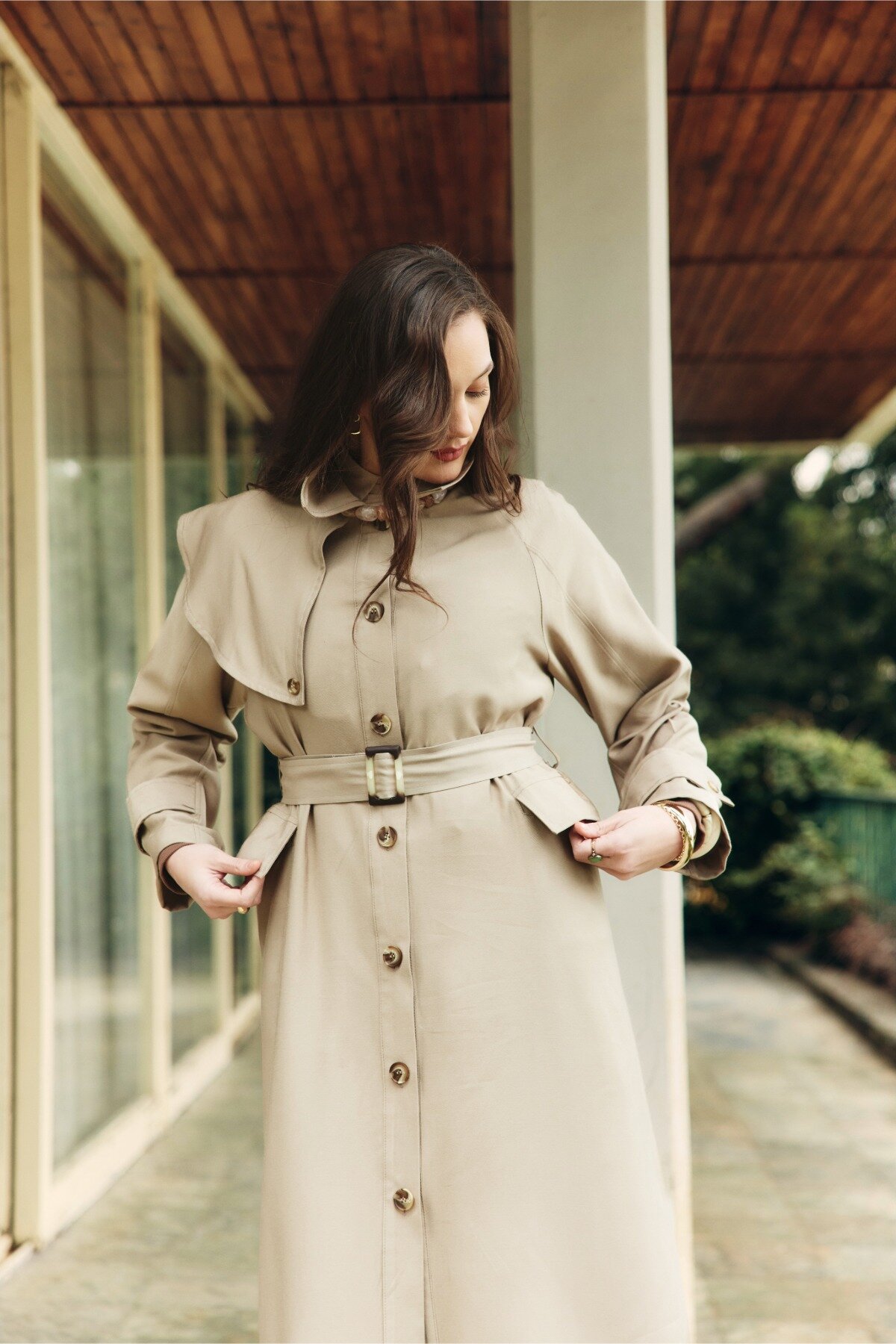 Omuzdan Parçalı Tensel Trençkot Koyu Taş