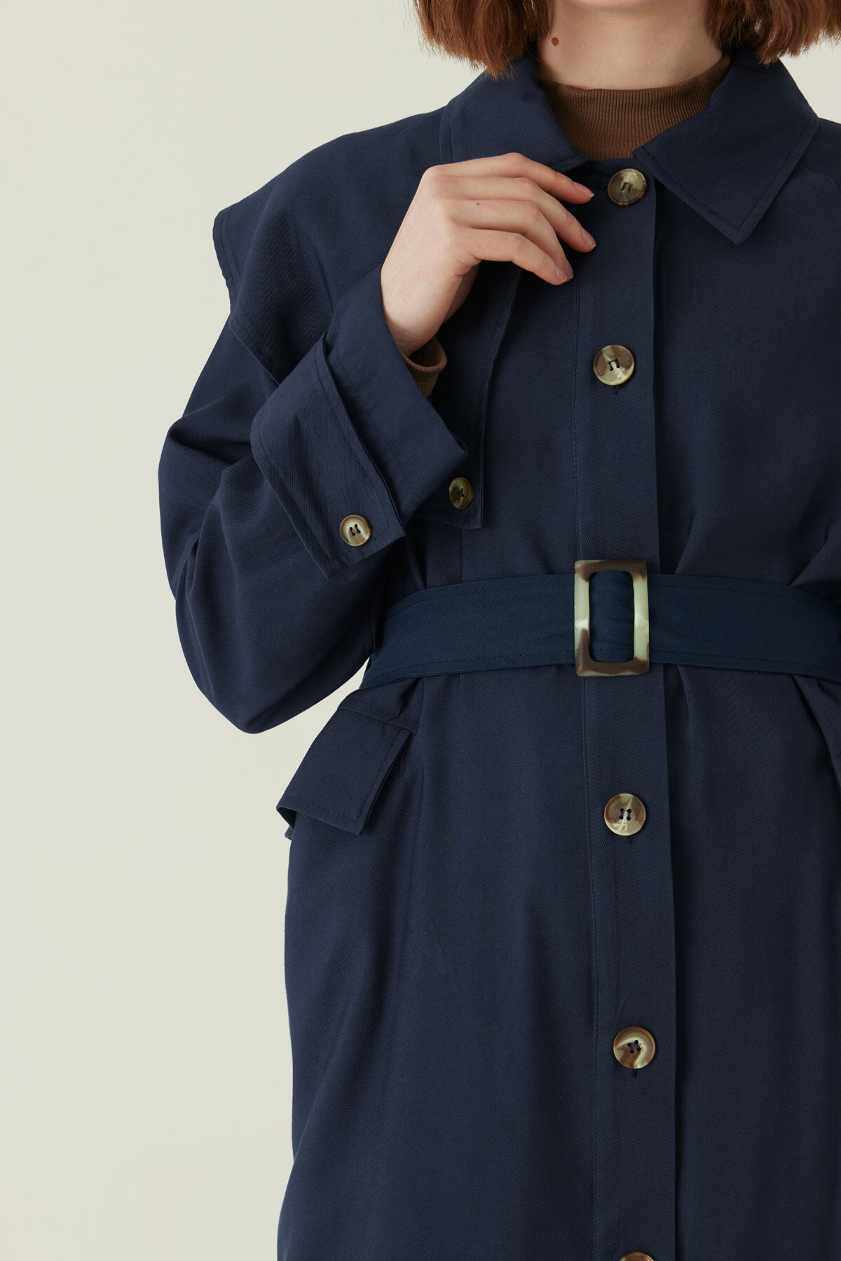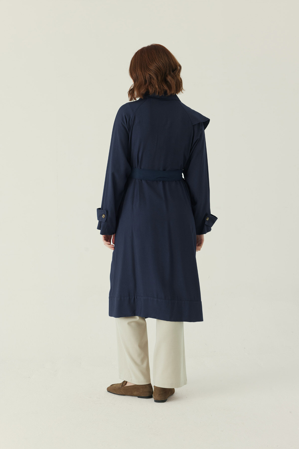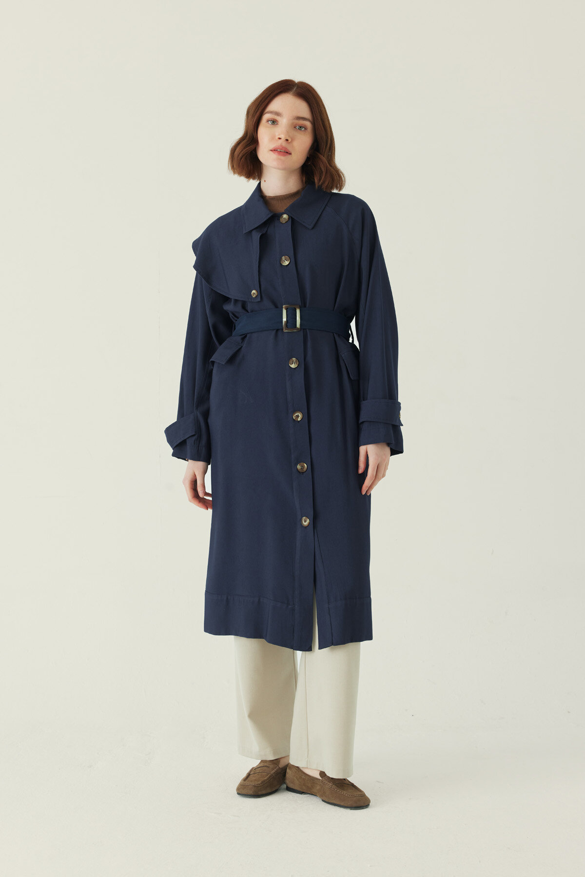 Omuzdan Parçalı Tensel Trençkot Lacivert