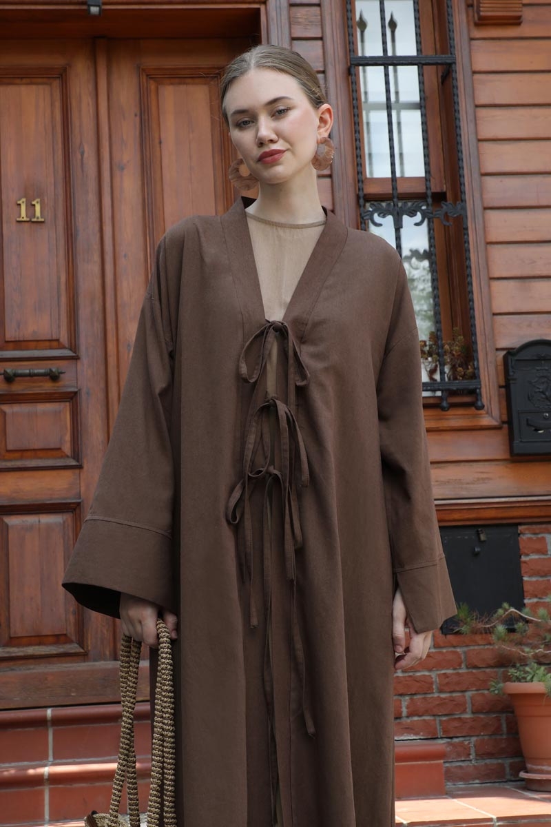Önden Bağlamalı Abaya Kahverengi
