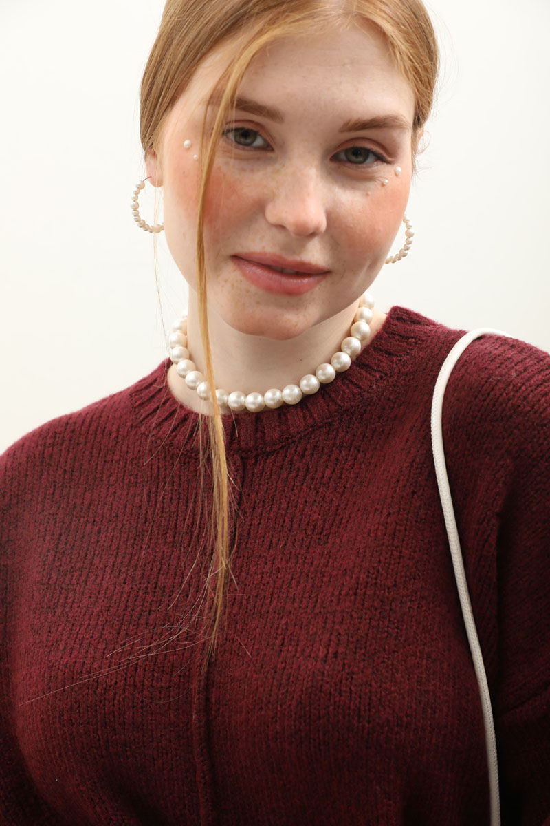 Önden Dikişli Oversize Kazak Bordo. Bisiklet yaka, düşük omuzlu, manşeti ve etek ucu fitilli örme ribanadır, ön orta dikiş detaylıdır. Etek, elbise ve pantolon üzerine tercih edilebilir. Kış aylarında tercih edebilirsiniz.