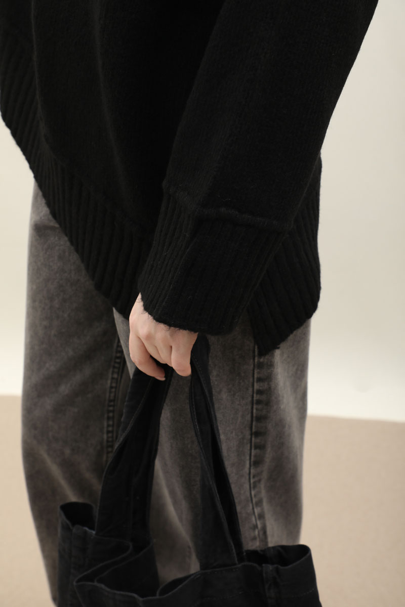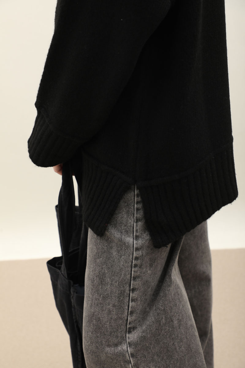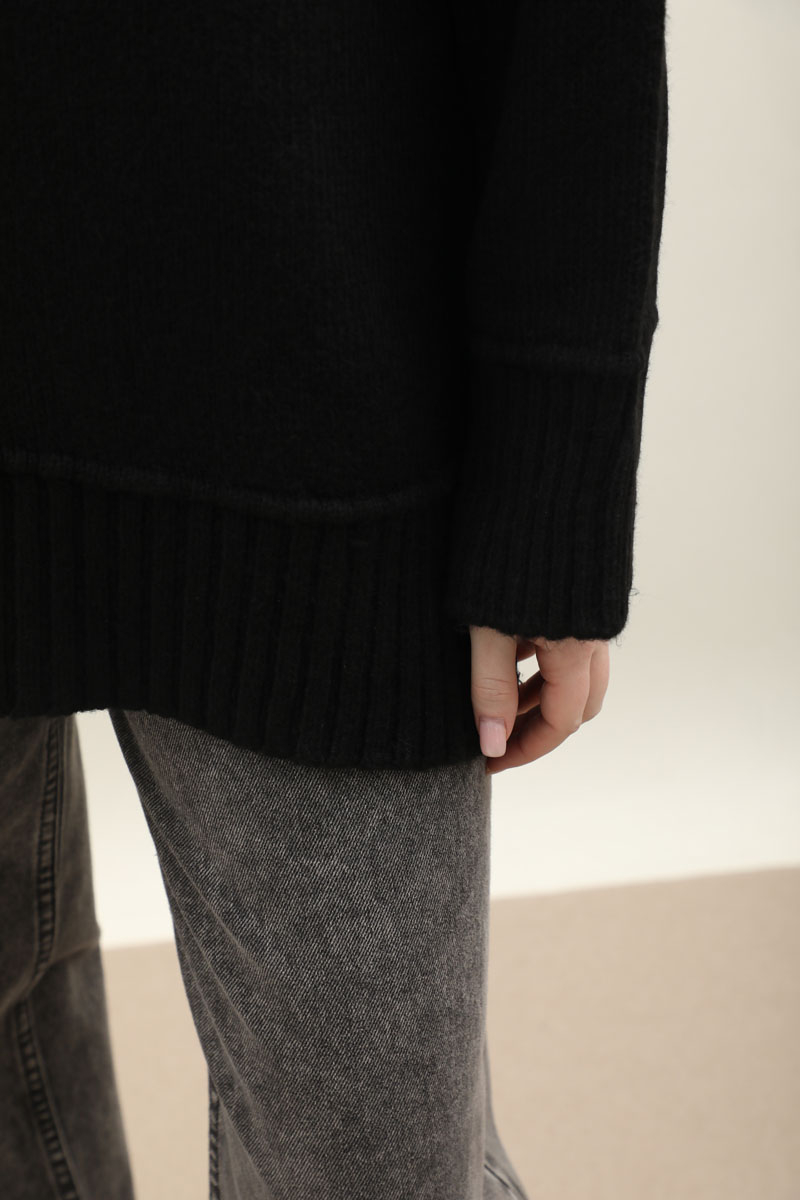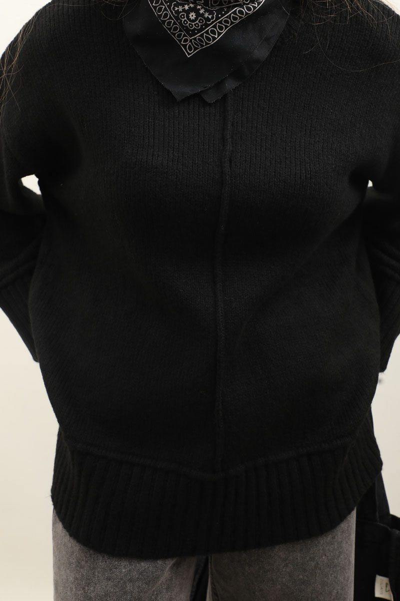 Önden Dikişli Oversize Kazak Siyah