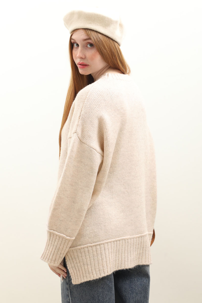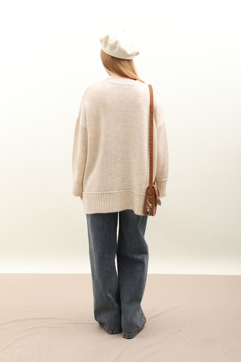 Önden Dikişli Oversize Kazak Taş