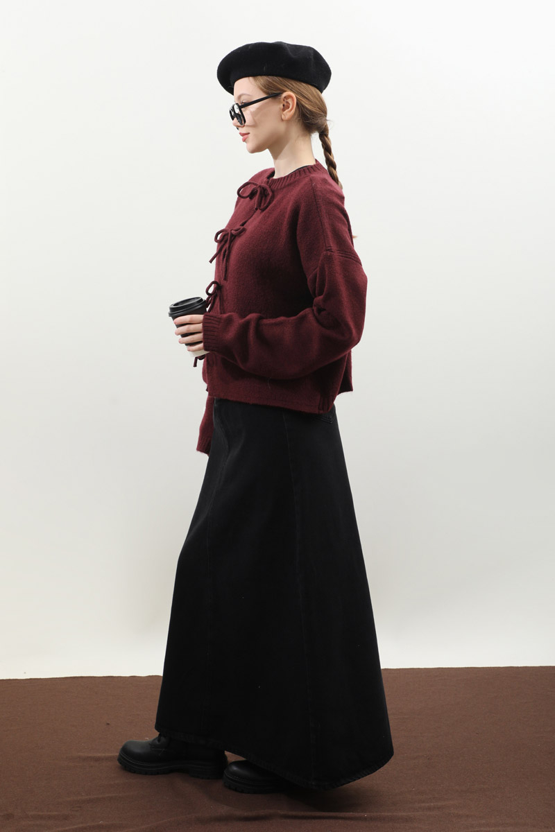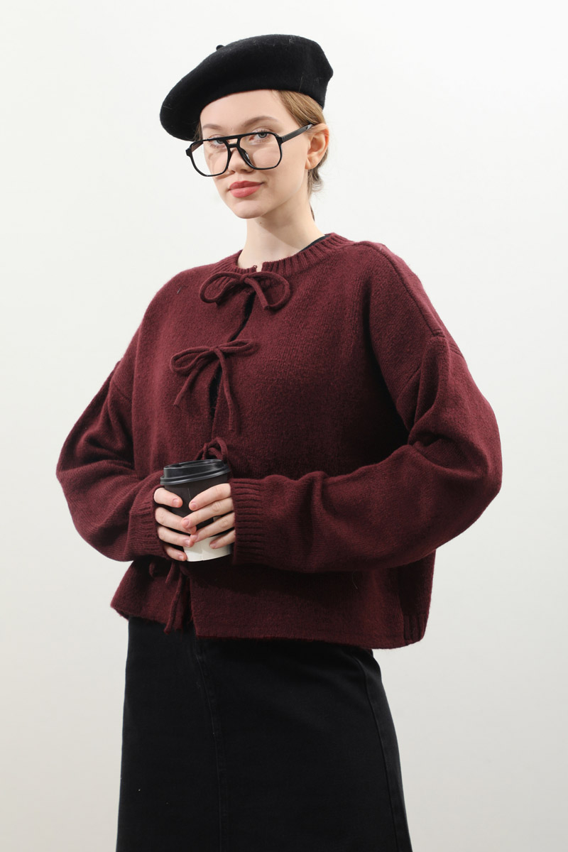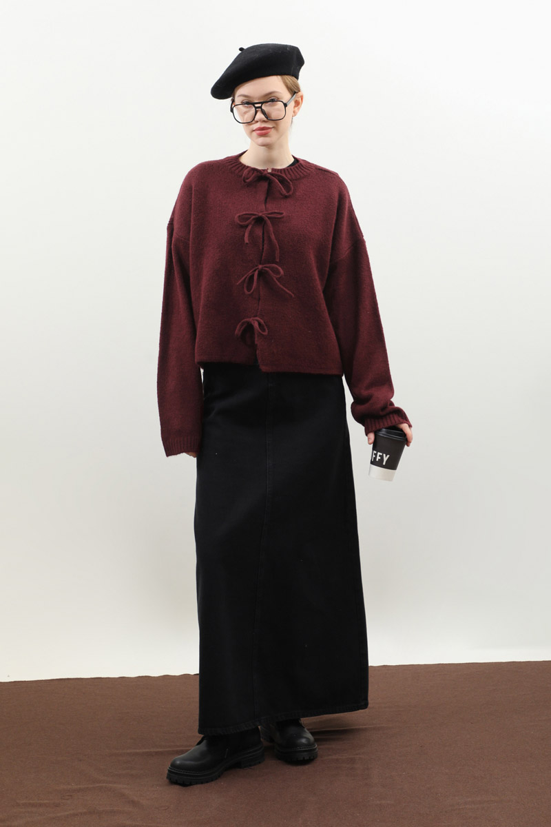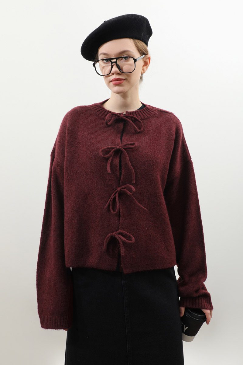Önü Bağcıklı Hırka Bordo. Hakim yakadır, düşük omuzludur, önden bağcıkldır, bol kesimdir. Günlük kullanım ve özel günlerinizde tercih edebilirsiniz.